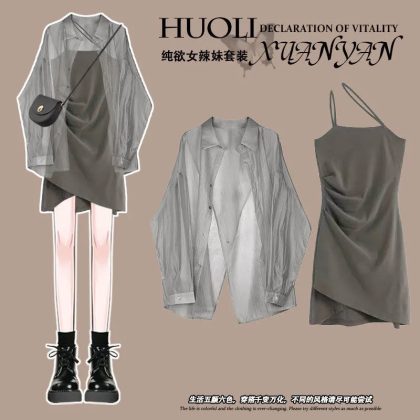 | nameOriginal | Summer Wear a Whole Set 2024 New Gentle Sunscreen Shirt Women's Slimming Sling Dress Two-piece Set |