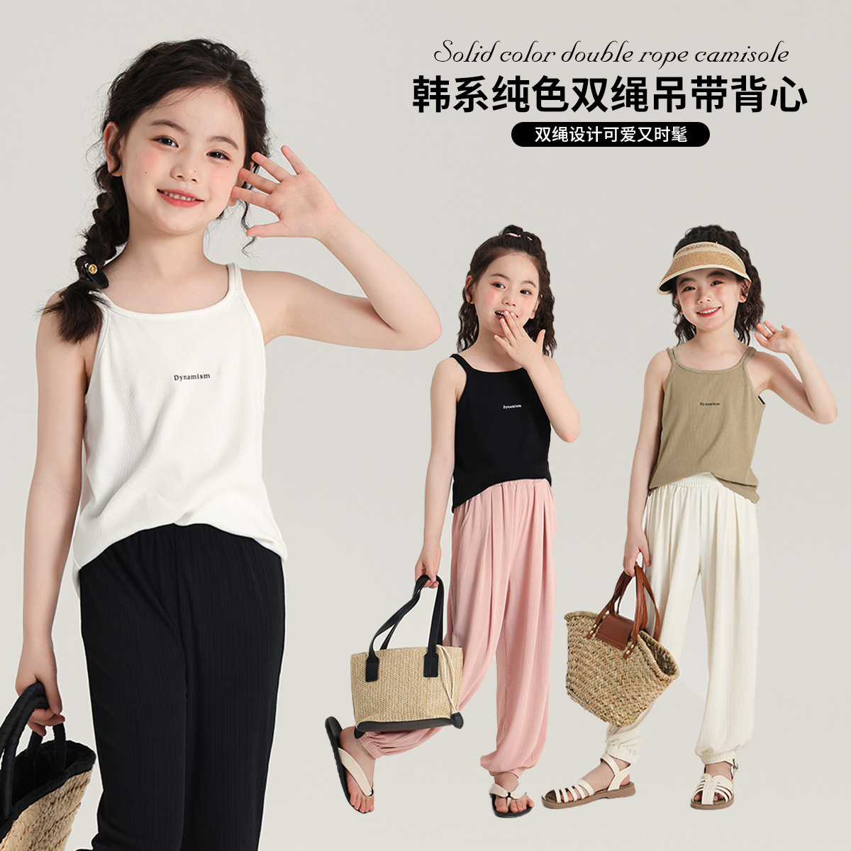 | nameOriginal | Summer Wear New Girl's Casual Double Rope Sling 2024 New Summer Sleeveless Letter Vest |