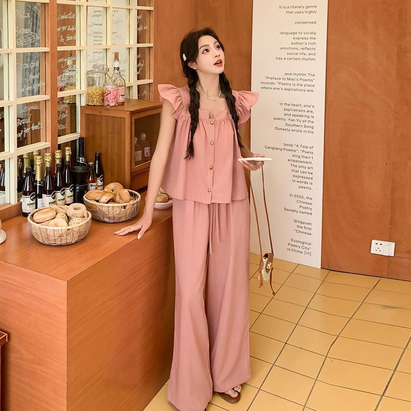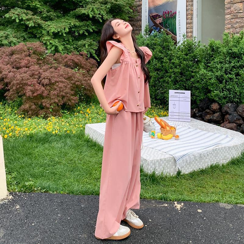 Summer wear with a set of women's 2024 summer new fashion sweet temperament age-reducing straight tube slim two-piece set