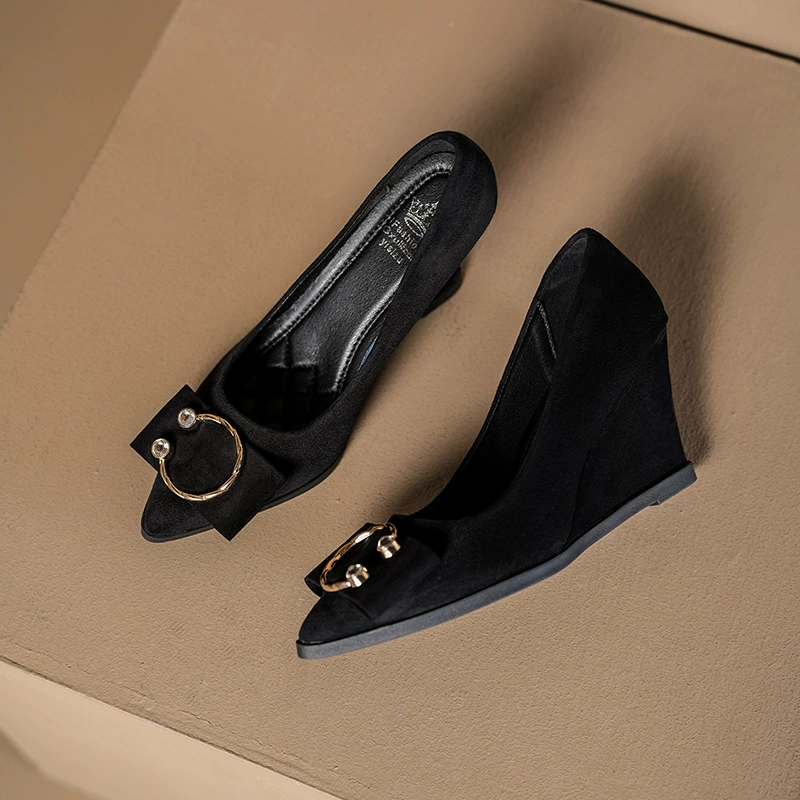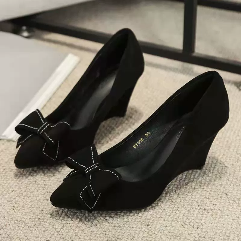 Summer wedge-heeled bow-knot shoes that are comfortable for long periods of time and will not tire your feet