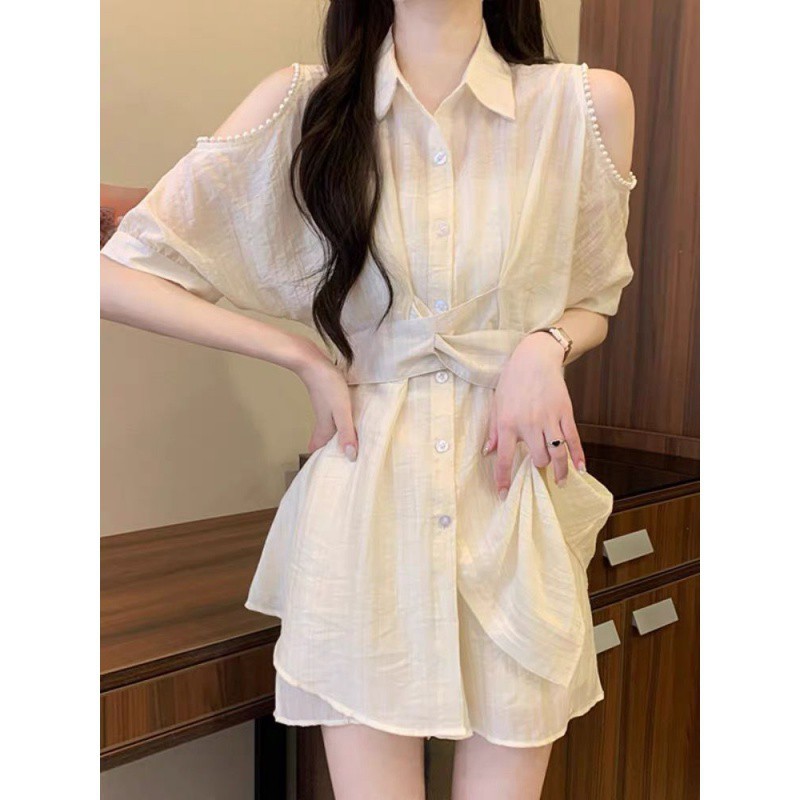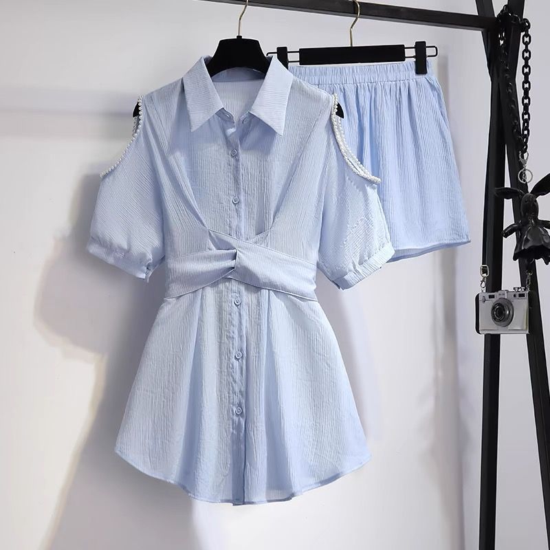| nameOriginal | Summer Western Style New Style Elegant Shirt suit Loose Off-shoulder Fashionable Sun Protection Flesh Cover Slimming Shorts Two-piece Set for Women |