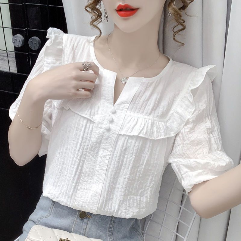 | nameOriginal | Summer white chiffon shirt women's summer 2024 new fashion very fairy clothes western style short sleeve shirt |
