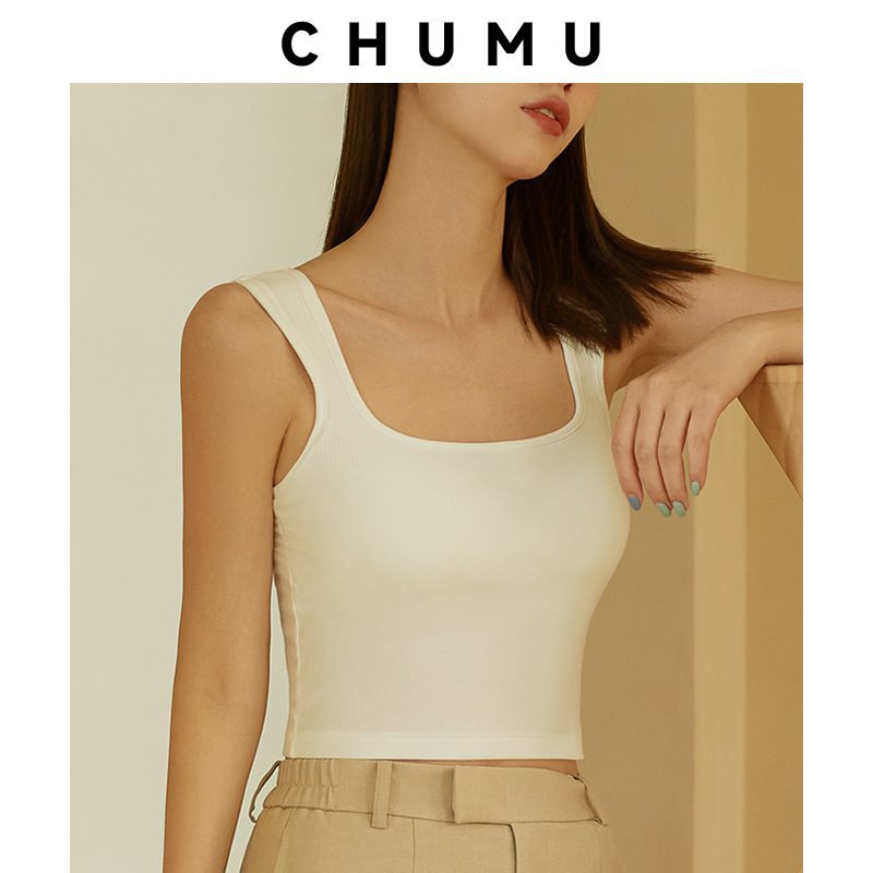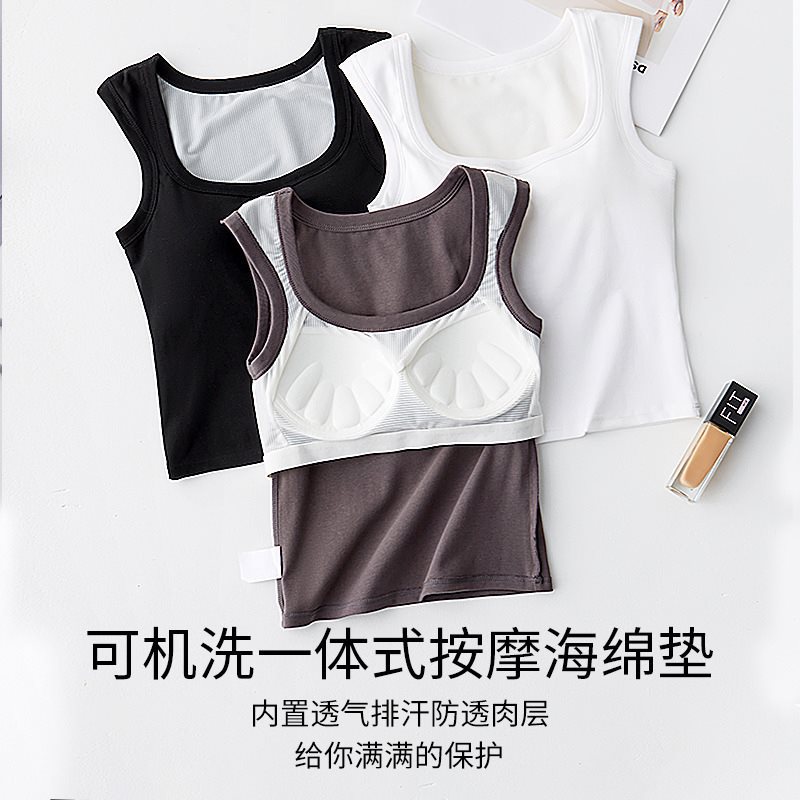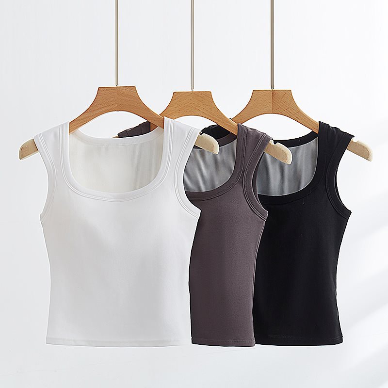 Summer white cotton vest with chest pad women’s inner square collar short hot girl wide shoulder outer wear base coat wholesale