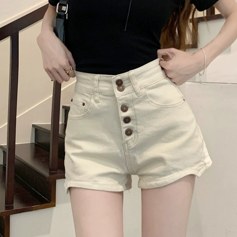 | nameOriginal | Summer white slim-fitting high-waisted denim shorts |