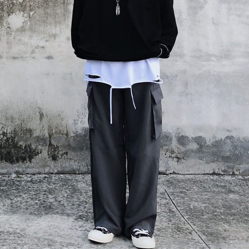 | nameOriginal | Summer wide leg pants men's ins Hong Kong wind pendant overalls loose straight pants Korean fashion casual pants wholesale |
