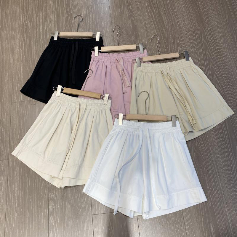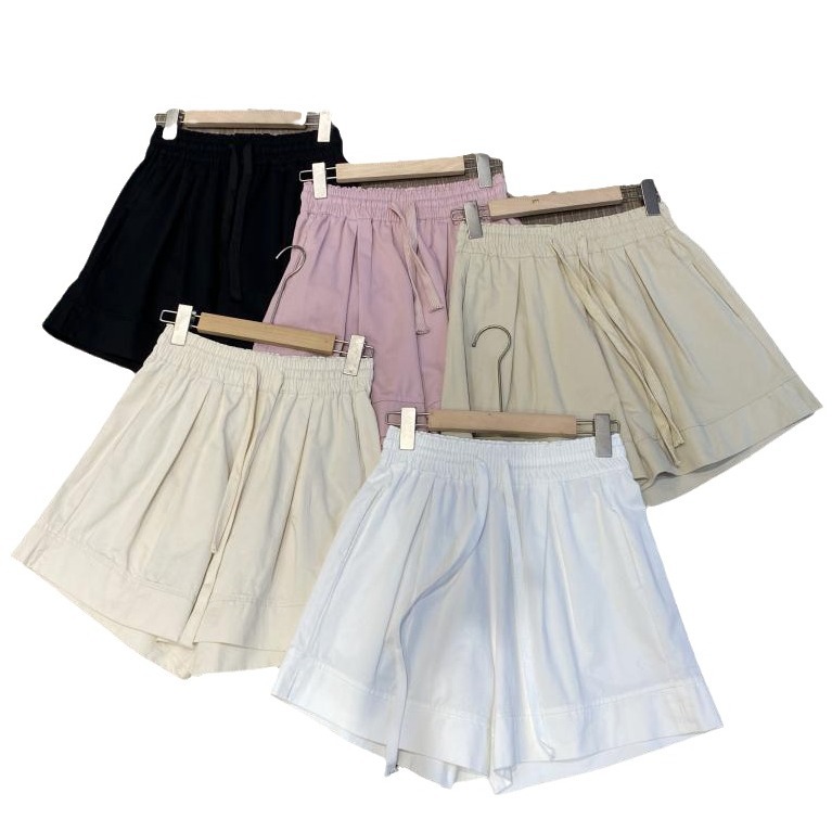 Summer wild color optional! 2024 New Lazy Information Elastic Waist Drawstring Wash Cotton Shorts Women