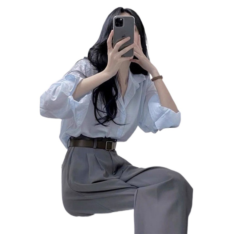 | nameOriginal | Summer women's 2024 new high-end sense light mature wind royal sister two-piece women's temperament shirt pants suit Hong Kong flavor |