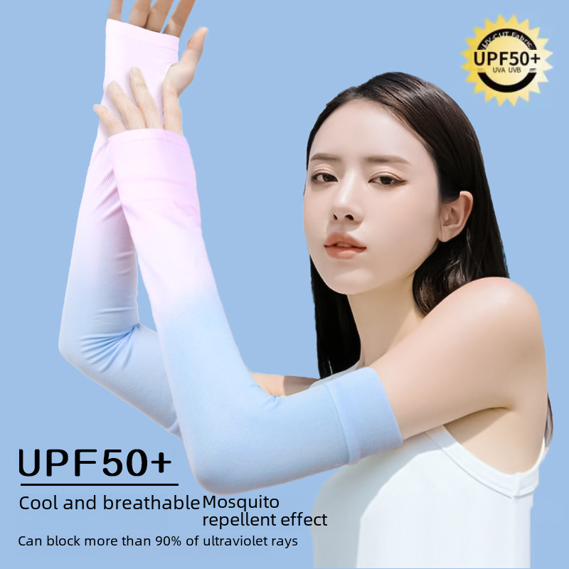 Summer Women's Ice Silk gloves outdoor riding thin gradient color ice sleeve arm protection mosquito repellent sun protection oversleeve UV