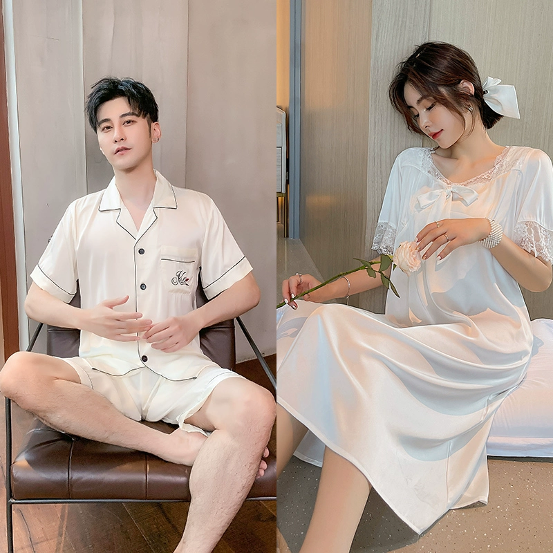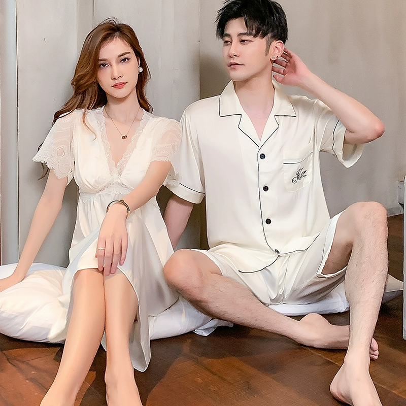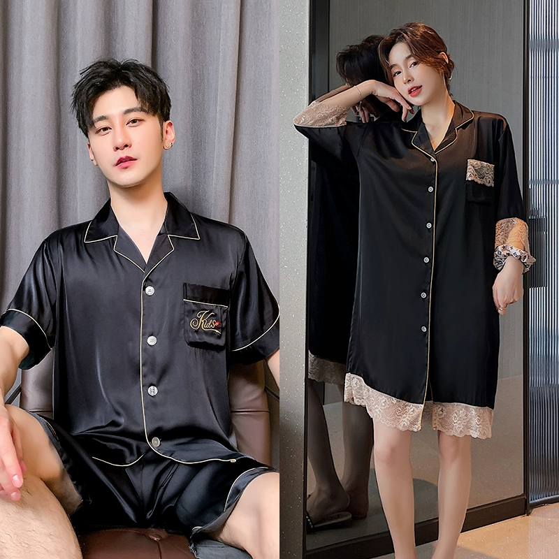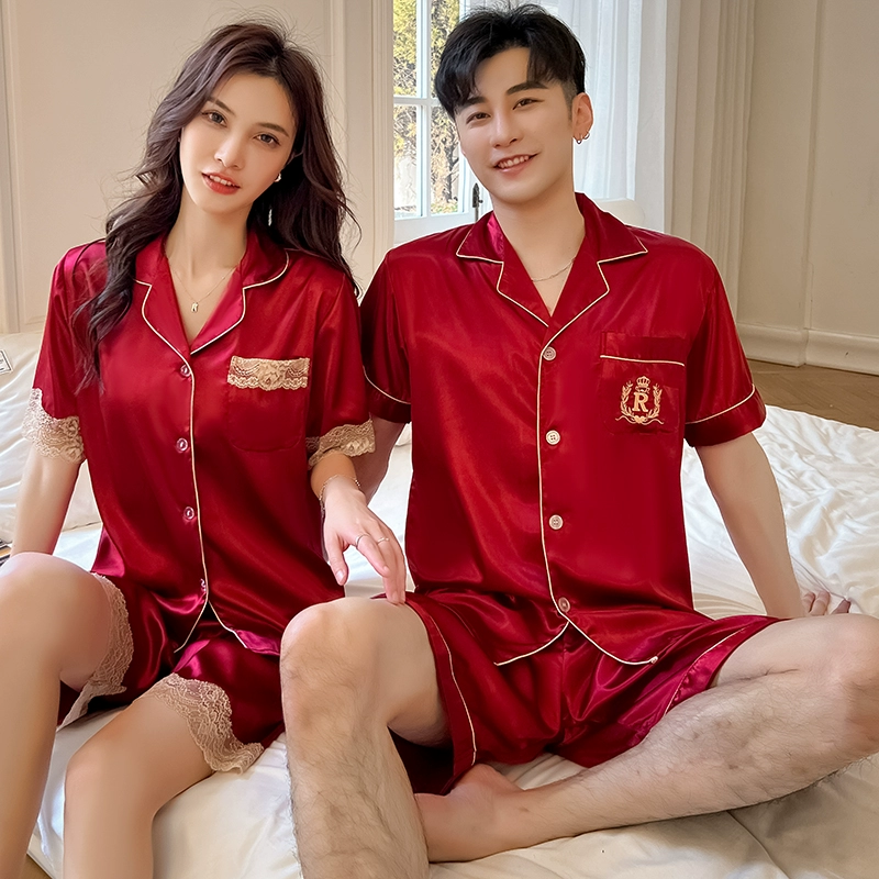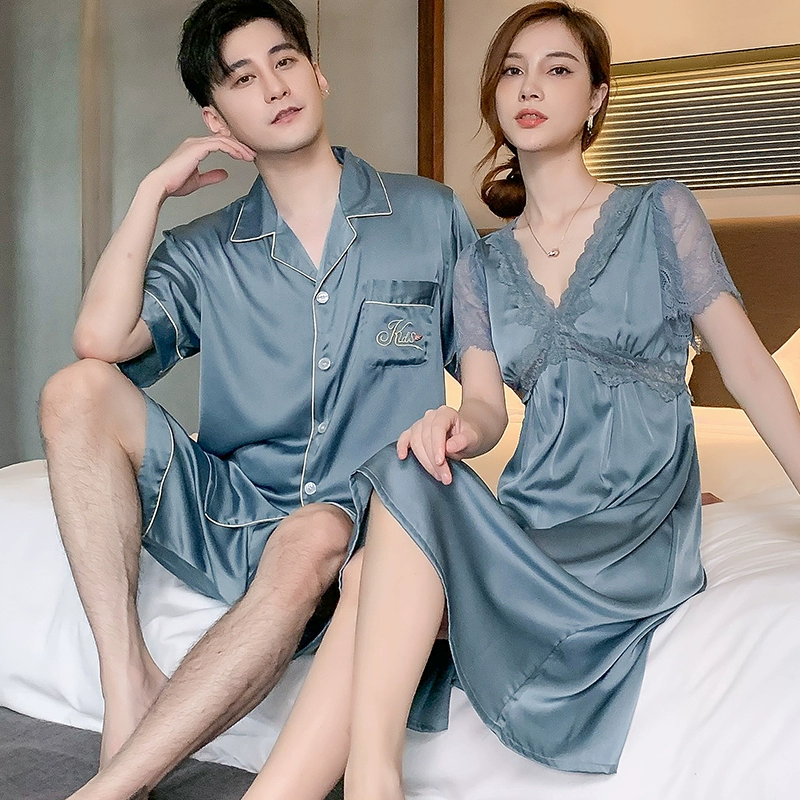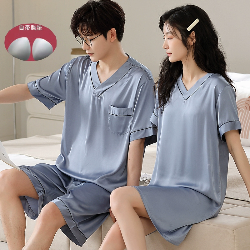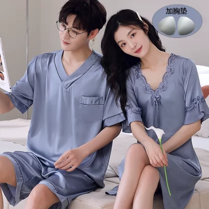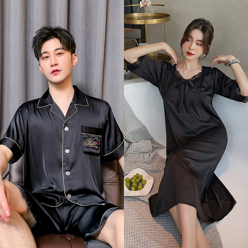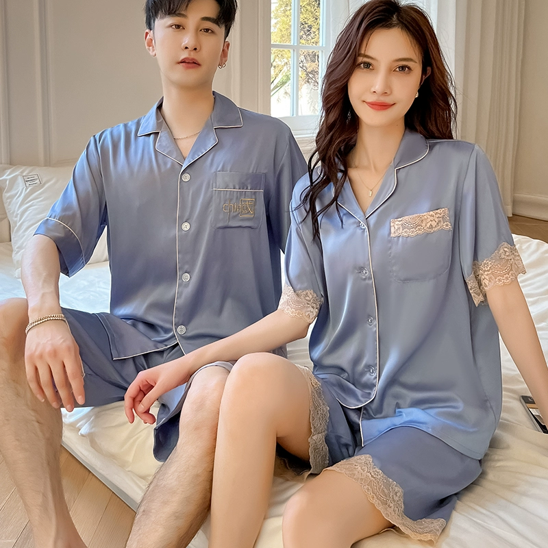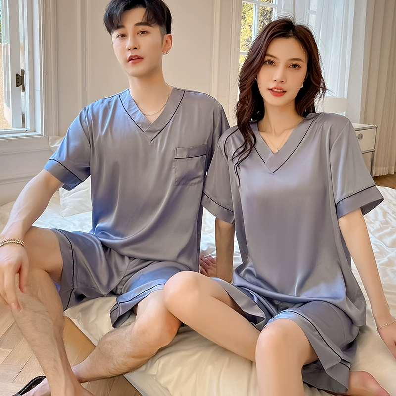| nameOriginal | Summer women's ice silk sexy men's solid color couple pajamas |