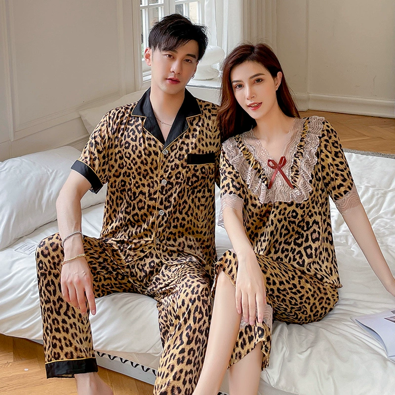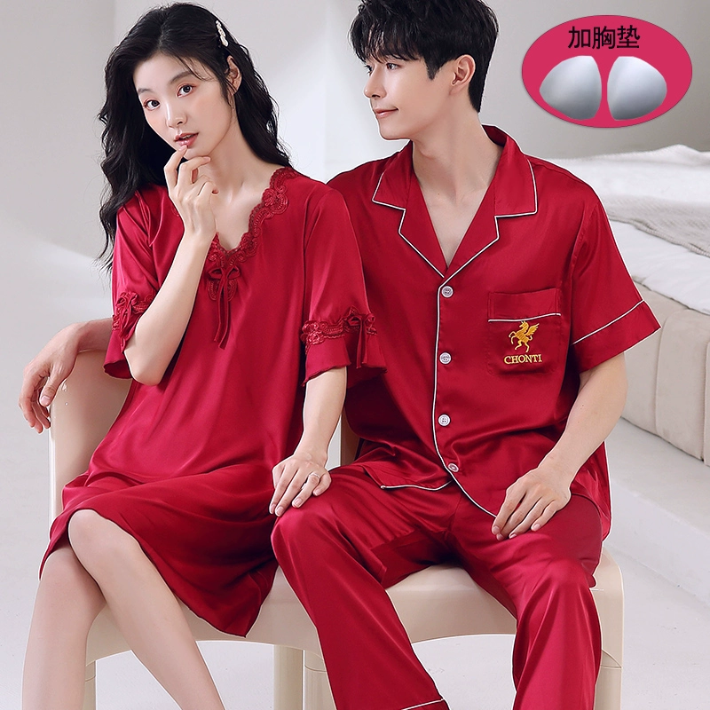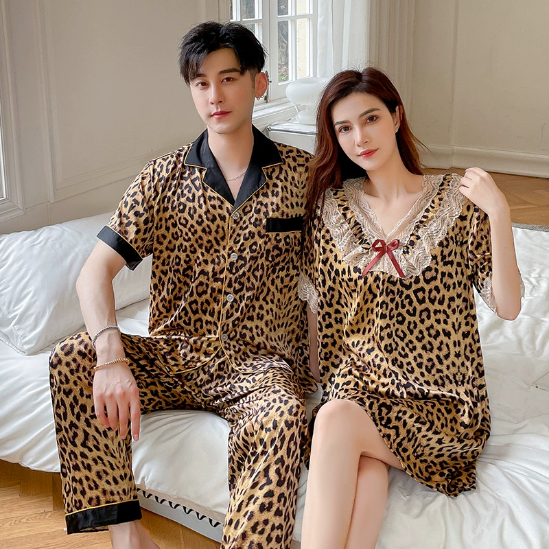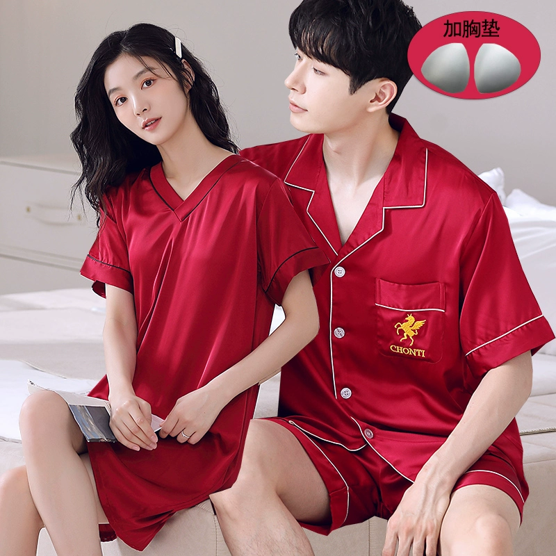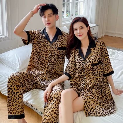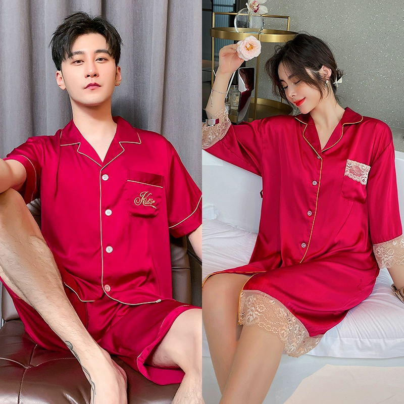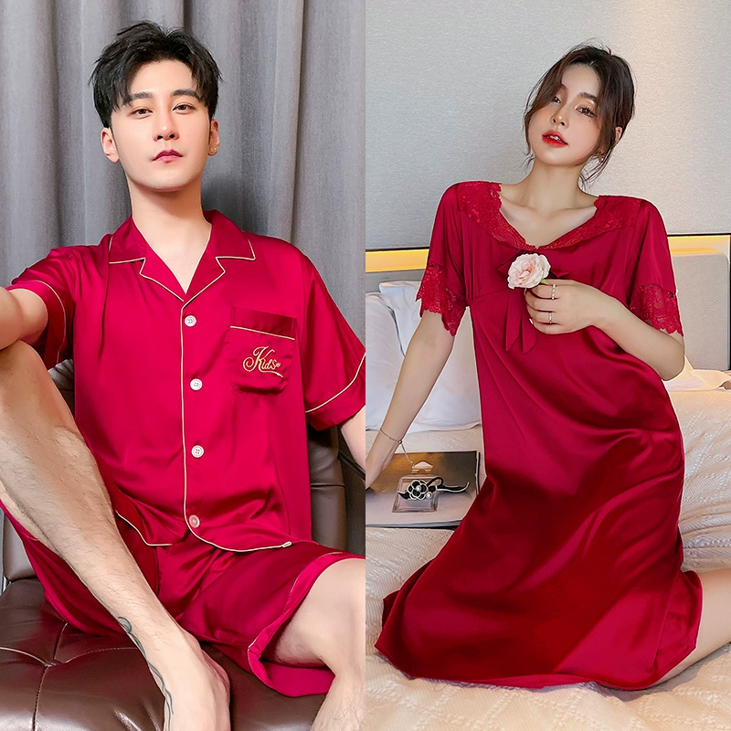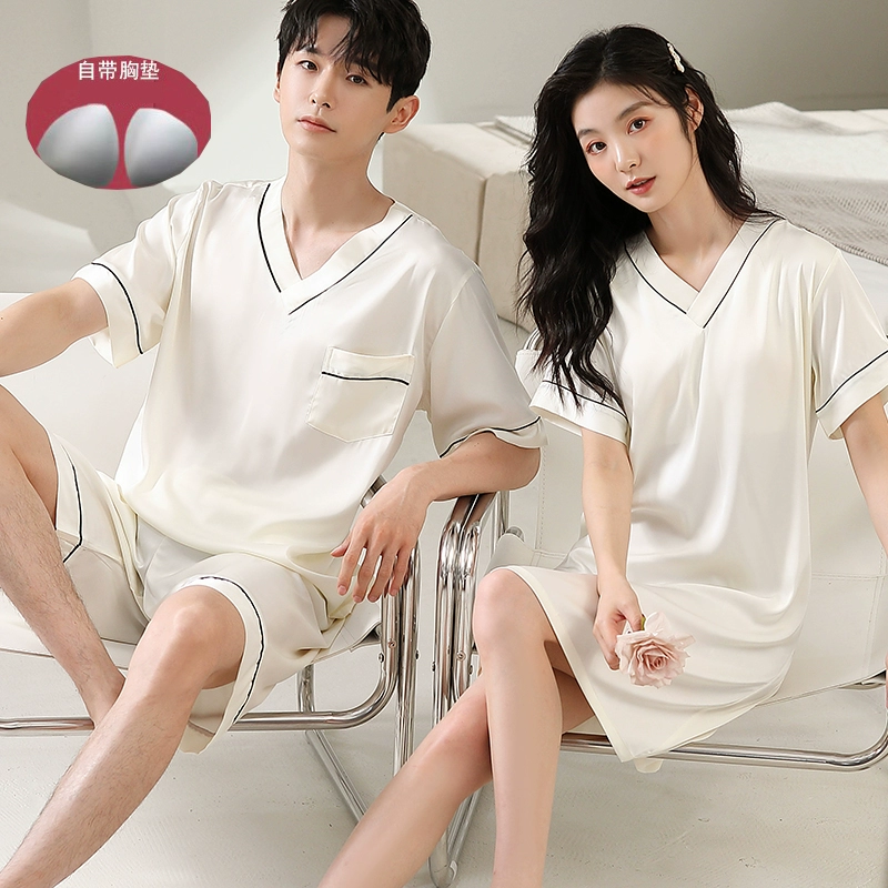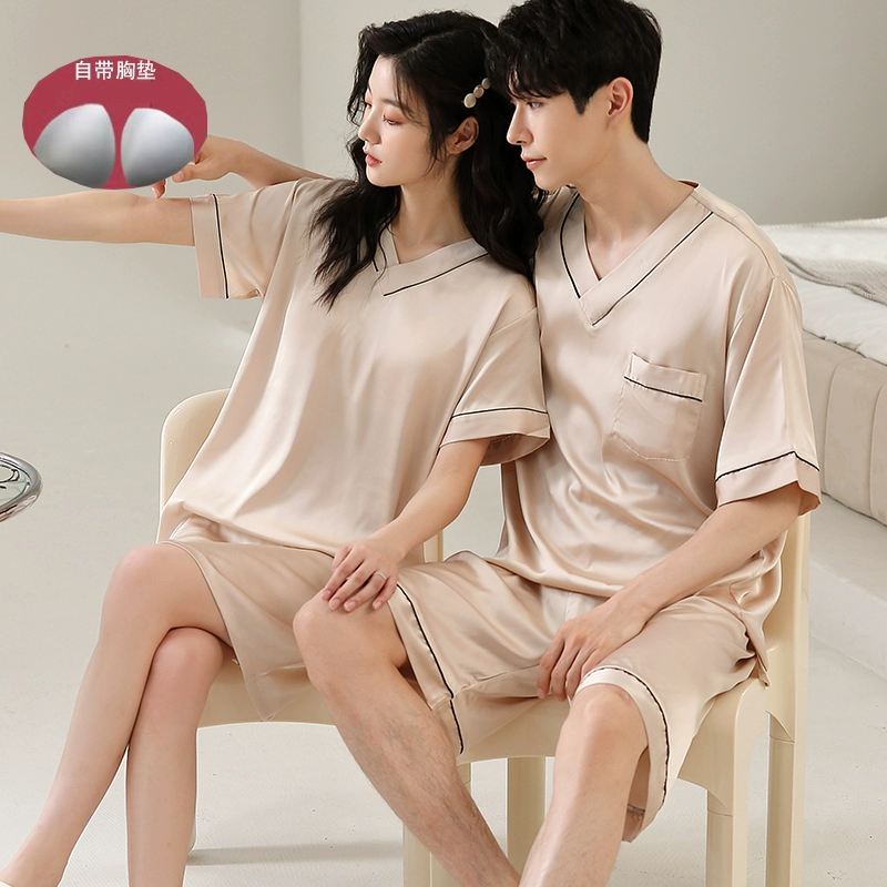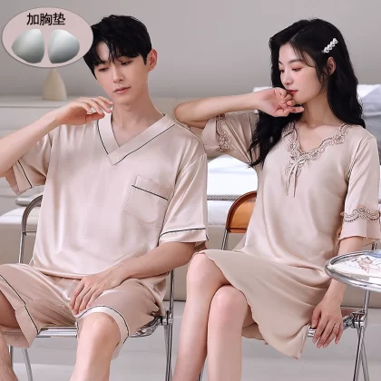 | nameOriginal | Summer women's ice silk sexy men's solid color couple pajamas |