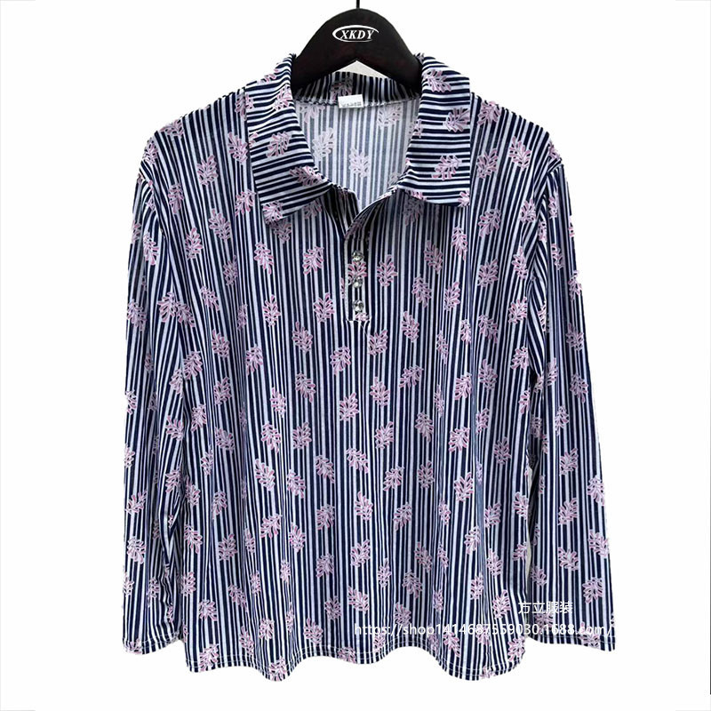 | nameOriginal | Summer women's long-sleeved loose T-shirt middle-aged and elderly mothers women's summer New lapel Ice Silk thin top fashion |