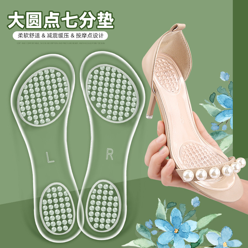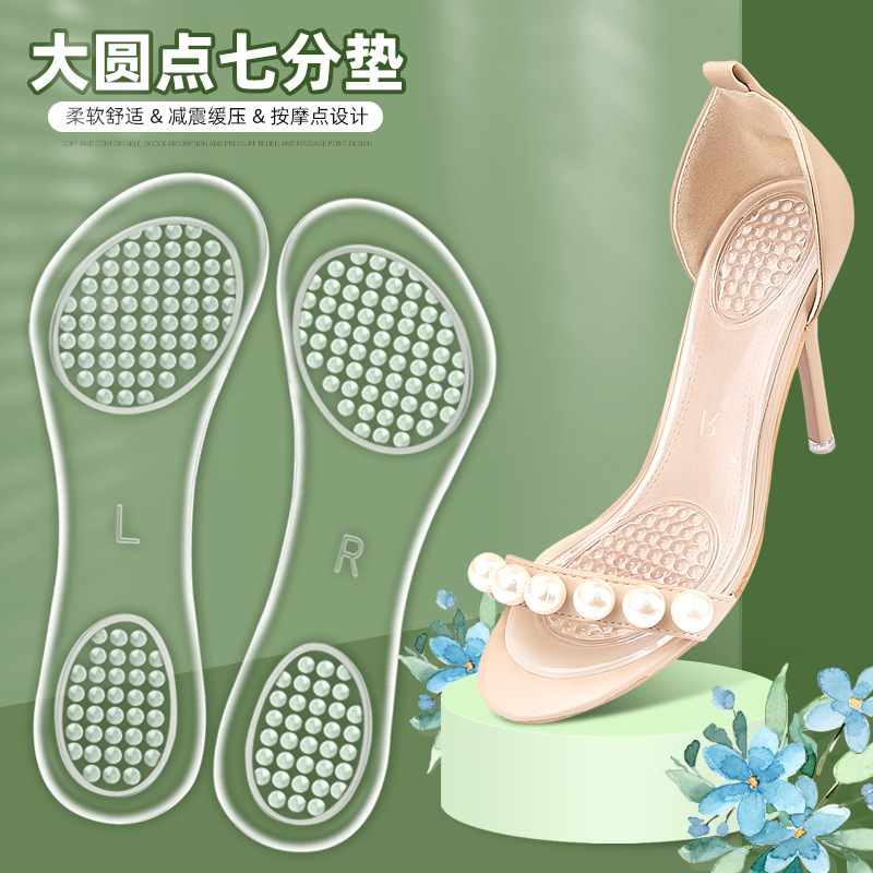 Summer Women's Non-slip Large Round Point Seven-point Pad Soft High-heeled Shoes Insole Women's Decompression Single-layer Shoes Shock Absorption and Pressure Relief 3/4 Pad
