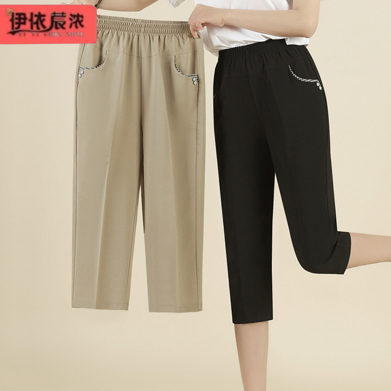 | nameOriginal | Summer Women's Pants Ice Silk Cotton Cropped Straight Pants 2024 Summer New Middle-aged and Old Women's Mother Pants with Elbow Waist Pants |