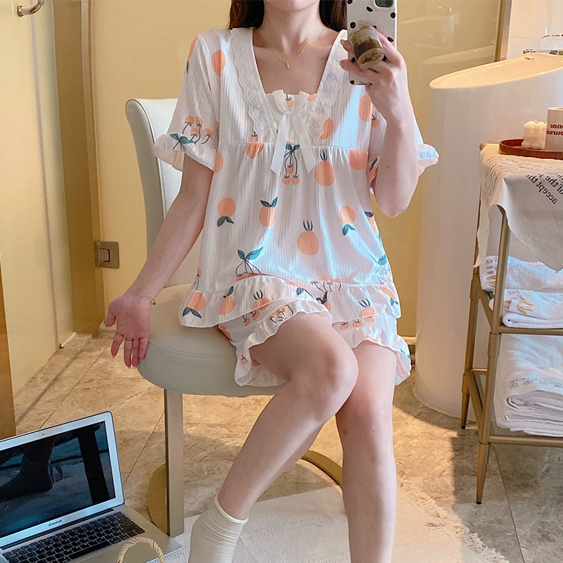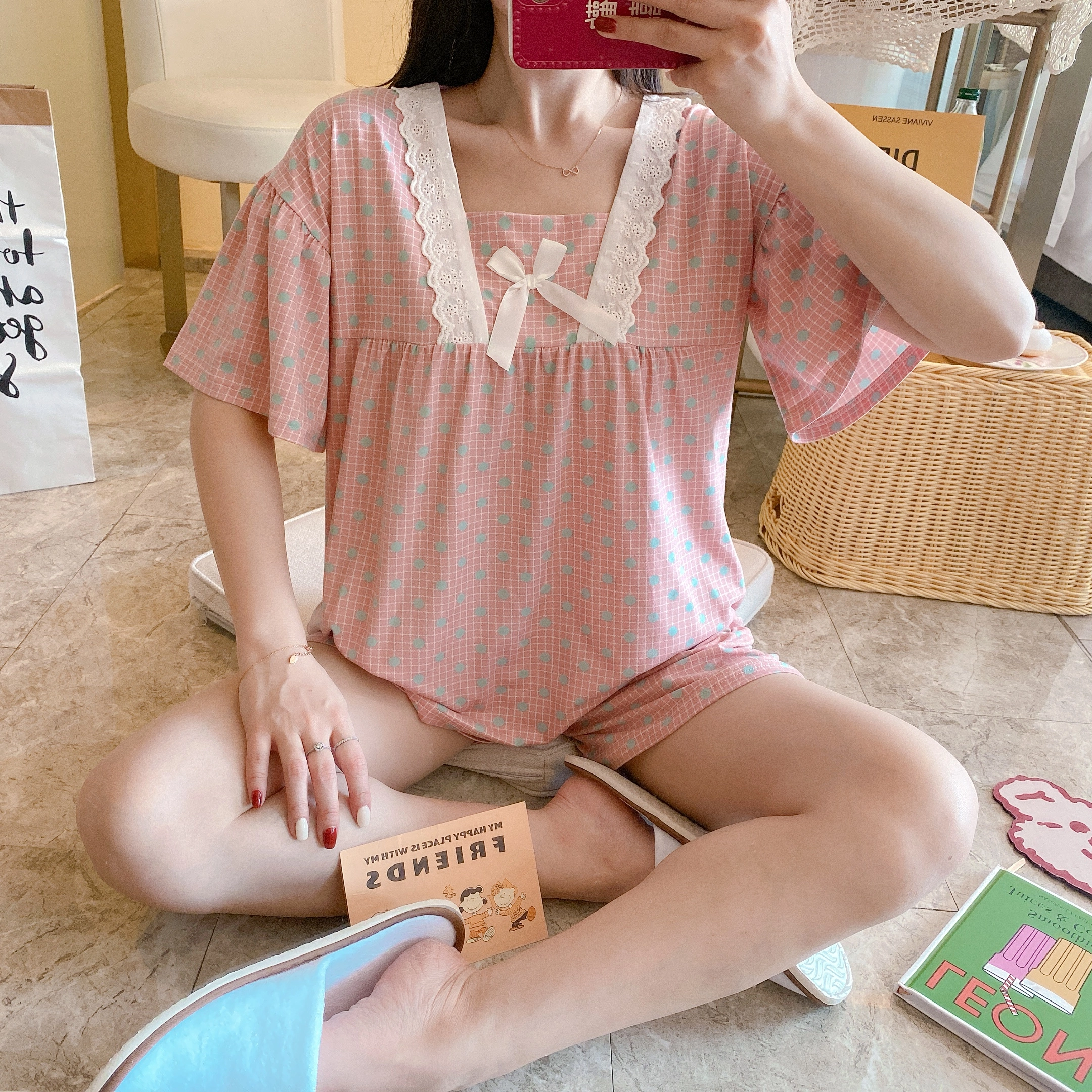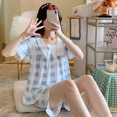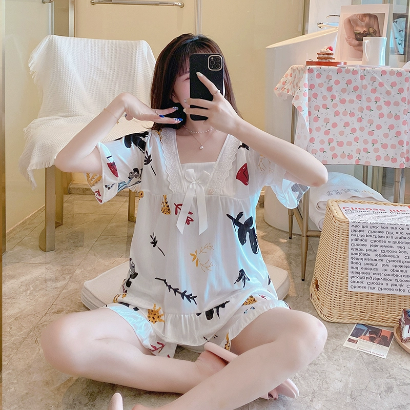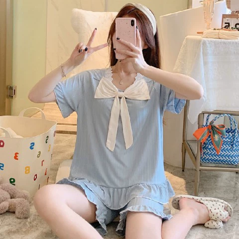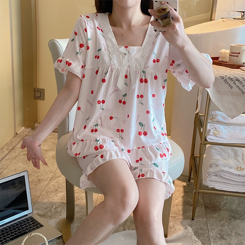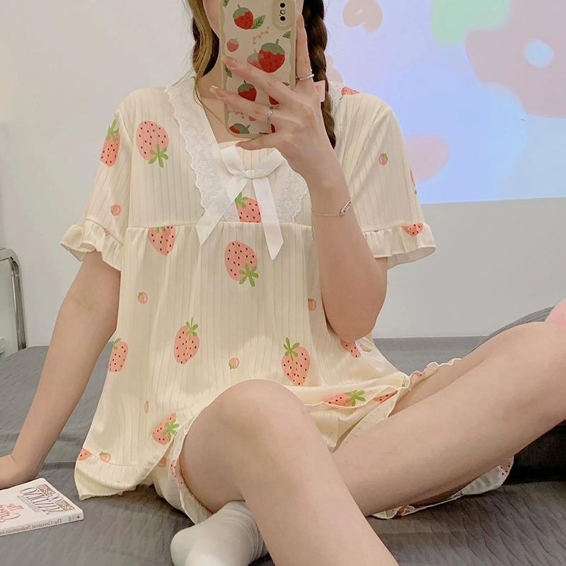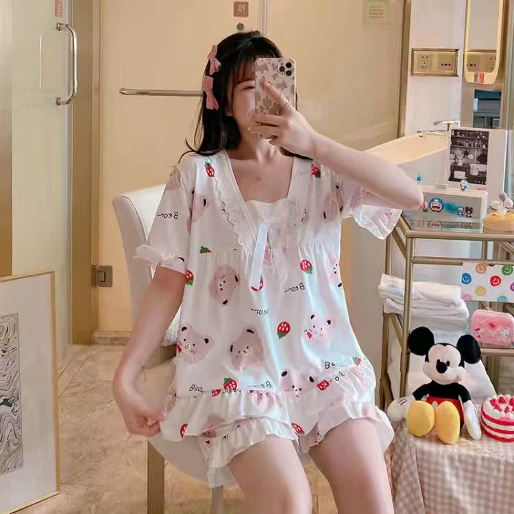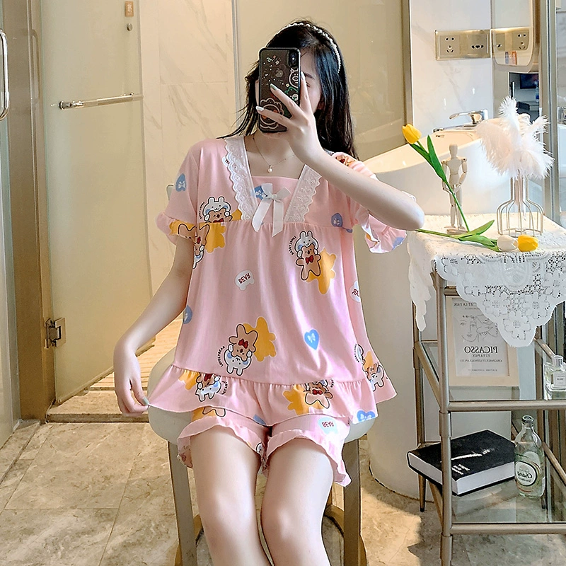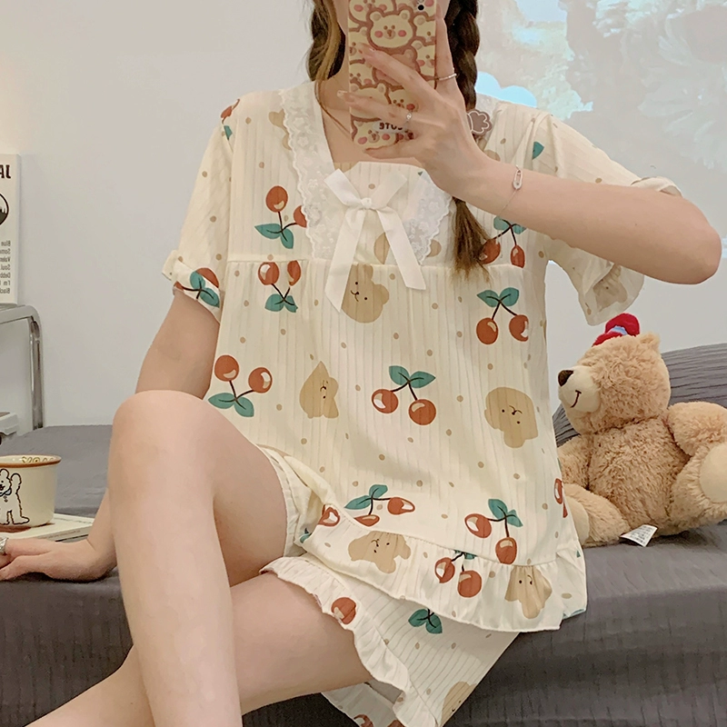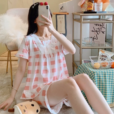 | nameOriginal | Summer women's short-sleeved thin student cute two-piece pajamas |