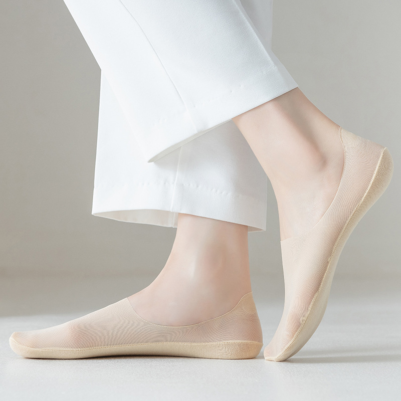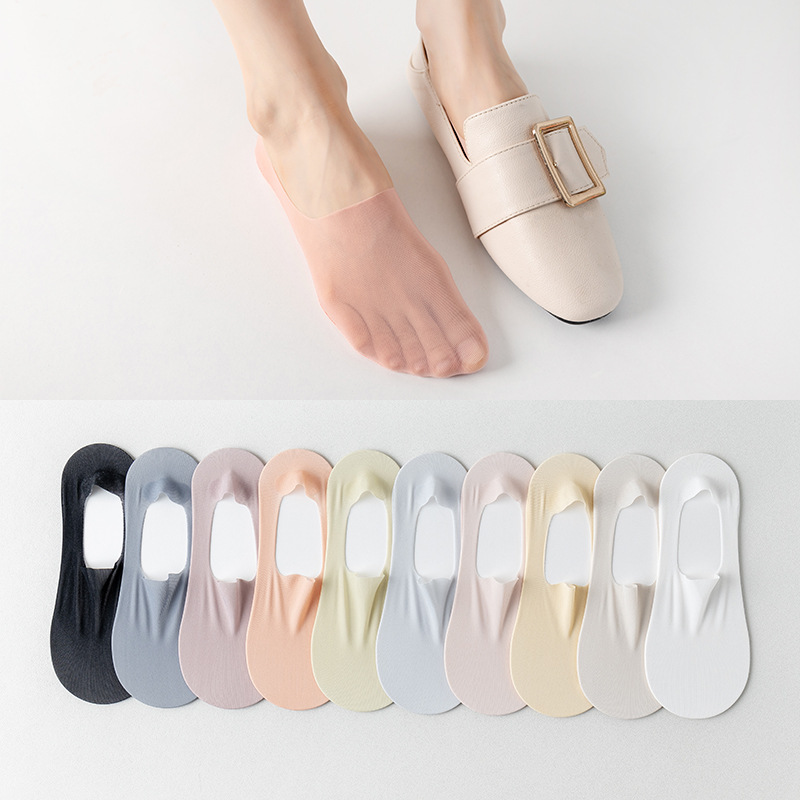 Summer Women's Socks Japanese Thin Shallow Mouth Invisible Socks Shallow Mouth Do Not Fall off Breathable Boat Socks Solid Color Cotton Bottom Women's Socks