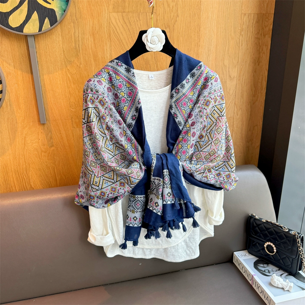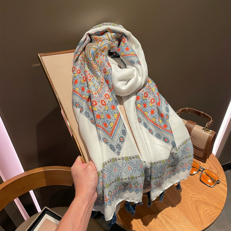 Summer Yunnan tourist women's cotton and linen fashion tassel silk scarf