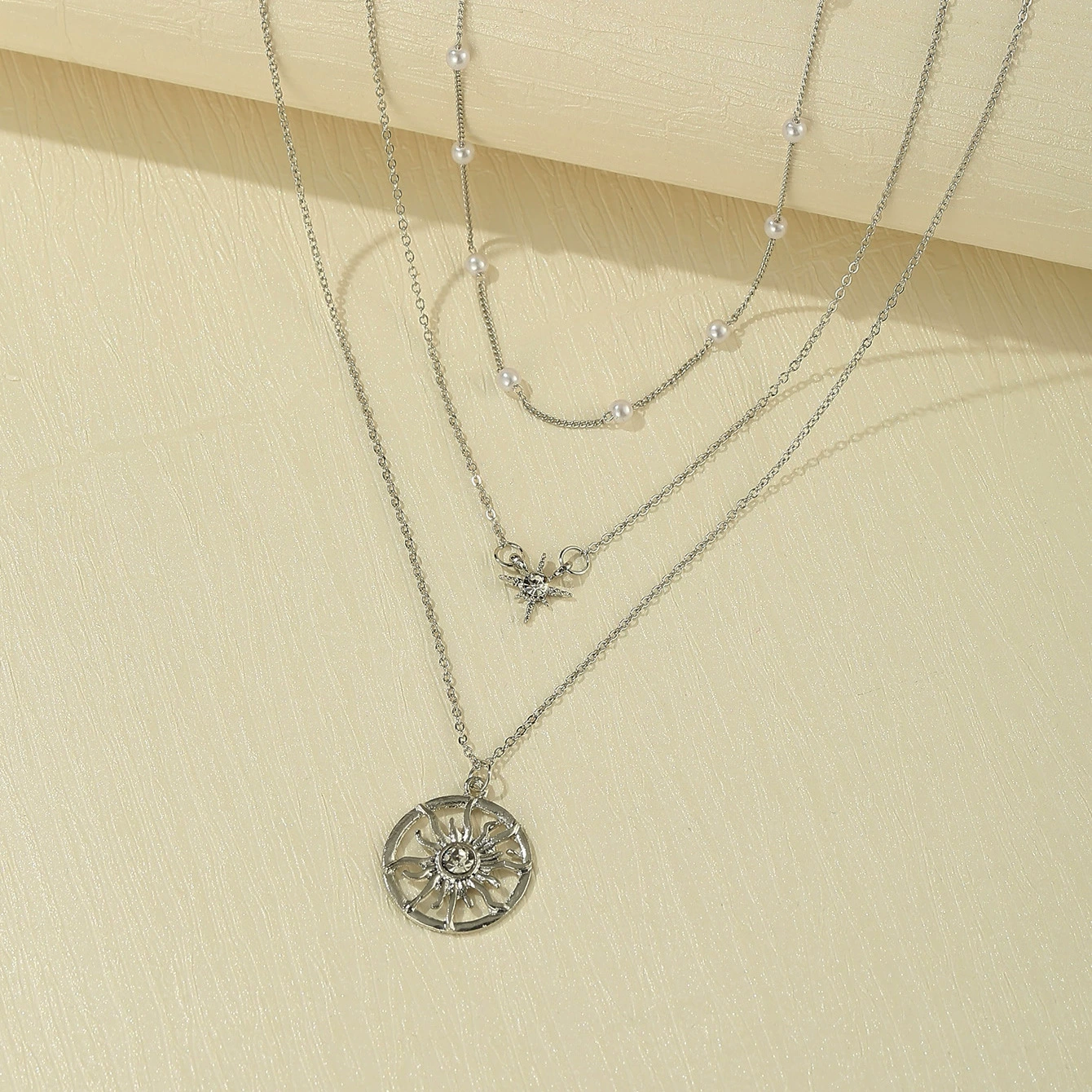| nameOriginal | Sun Pendant clavicle chain retro pearl multi-layer Necklace |