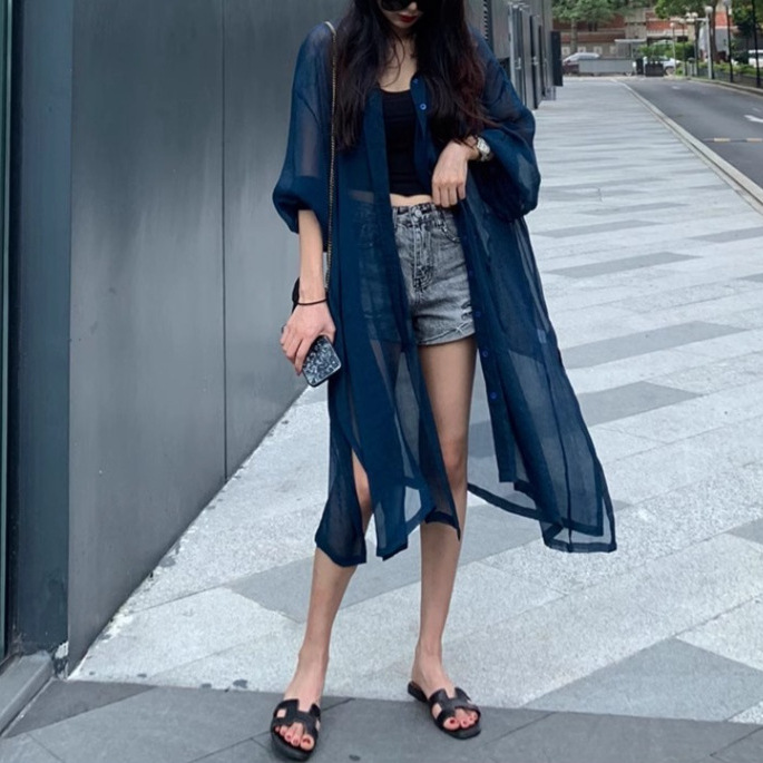 Sun Protection Clothing Women's 2024 Summer New Mid-length Outer-style Western Style Blouse Sun Protection Shirt Super Fairy Elegant Thin Jacket