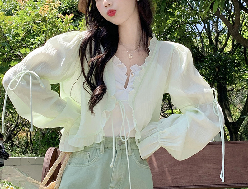 Sun protection shirt coat women’s design sense niche cardigan summer thin fresh sweet Korean chic short top women