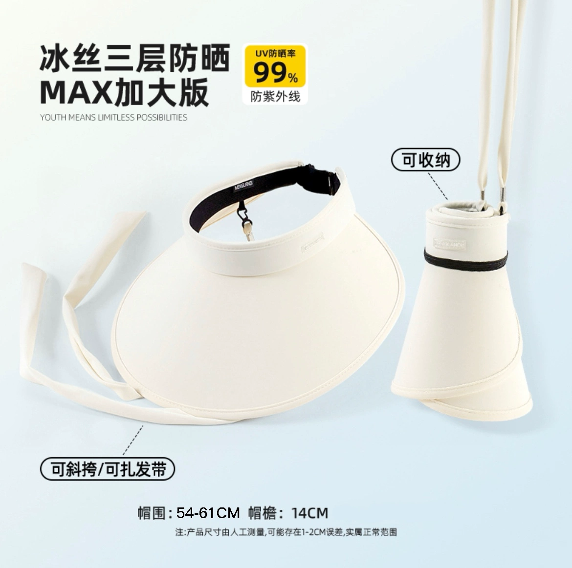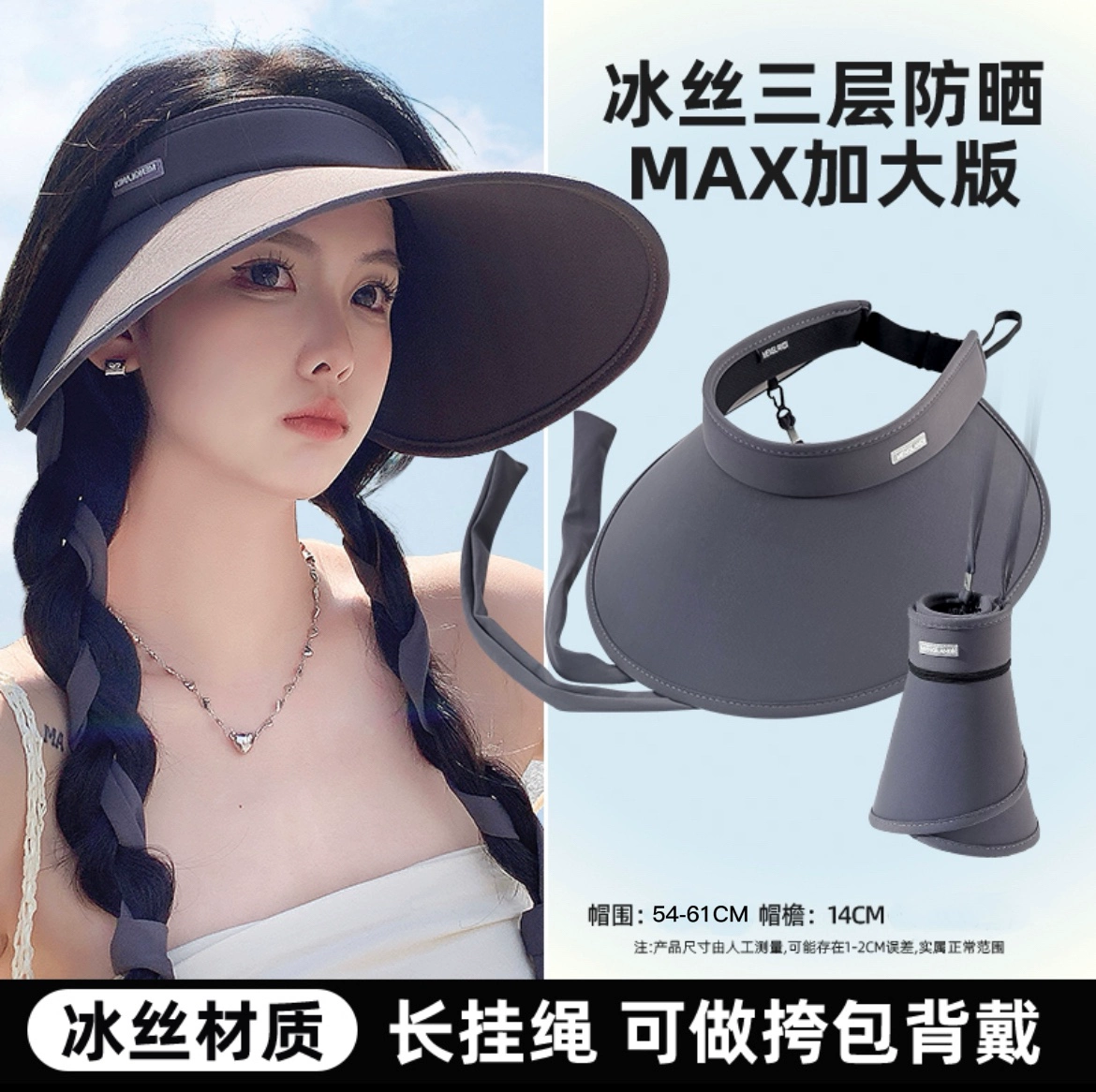 | nameOriginal | Sun visor, ice silk hollow top, face-showing, small folding large brim |