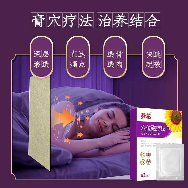 | nameOriginal | Sunflower acupuncture point magnetic therapy patch sleep-type insomnia health care patch sleep acupuncture patch auxiliary sleep sleep cold compress patch |