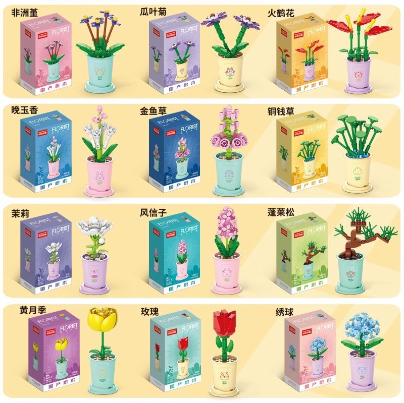 Sunflower Rose Carnation Couple Student Building Blocks
