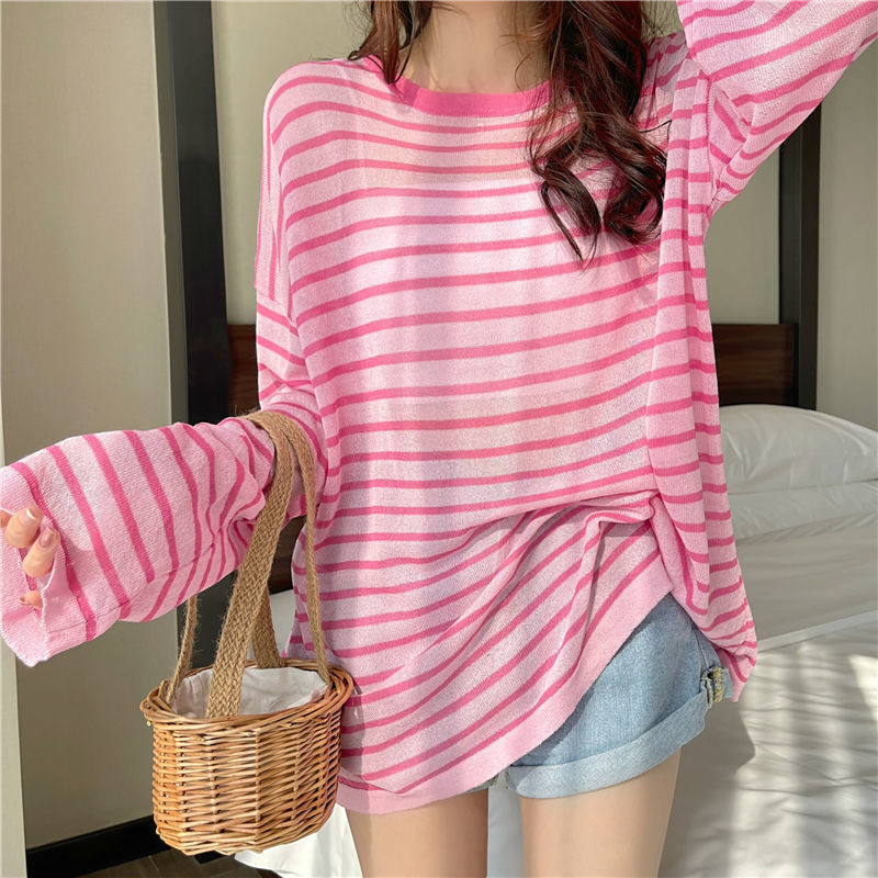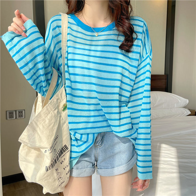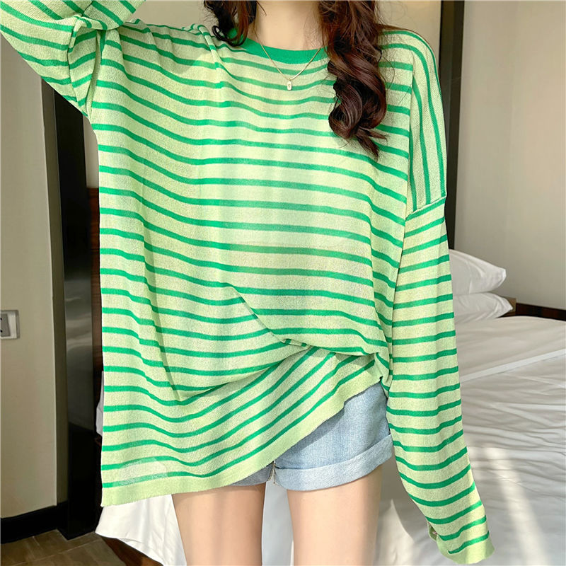 Sunscreen Blouse Thin Striped Shirt Women’s Summer 2024 New Loose Candy Color All-match Long Sleeve Base Shirt