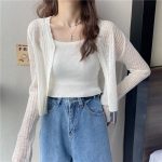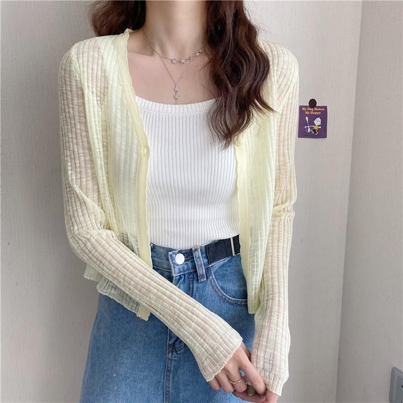 Sunscreen Cardigan Coat Women’s Summer 2024 Thin Outer Wear Loose Long-sleeved Knitted Short Spring and Autumn Ins Trendy Top