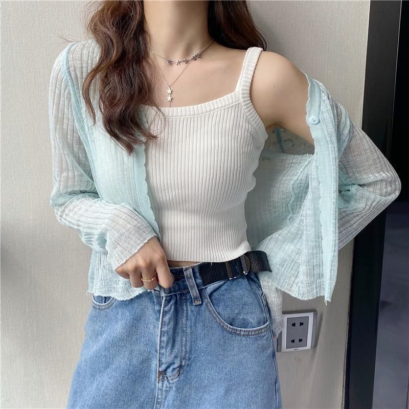 Sunscreen Cardigan Coat Women's Summer 2024 Thin Outer Wear Loose Long-sleeved Knitted Short Spring and Autumn Ins Trendy Top