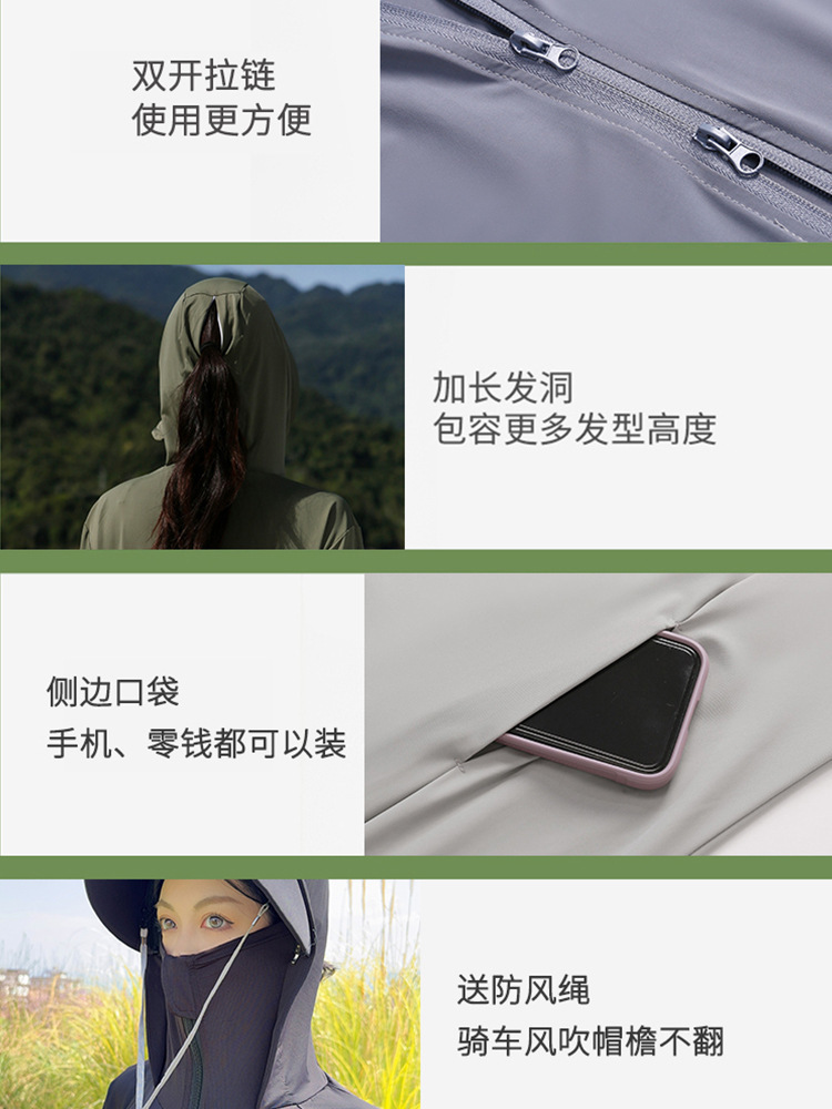 | nameOriginal | Sunscreen Clothing Women's 2024 New Summer Full-body Long Anti-ultraviolet Lightweight Breathable Ice Silk Trolley Riding Sunscreen Clothing |