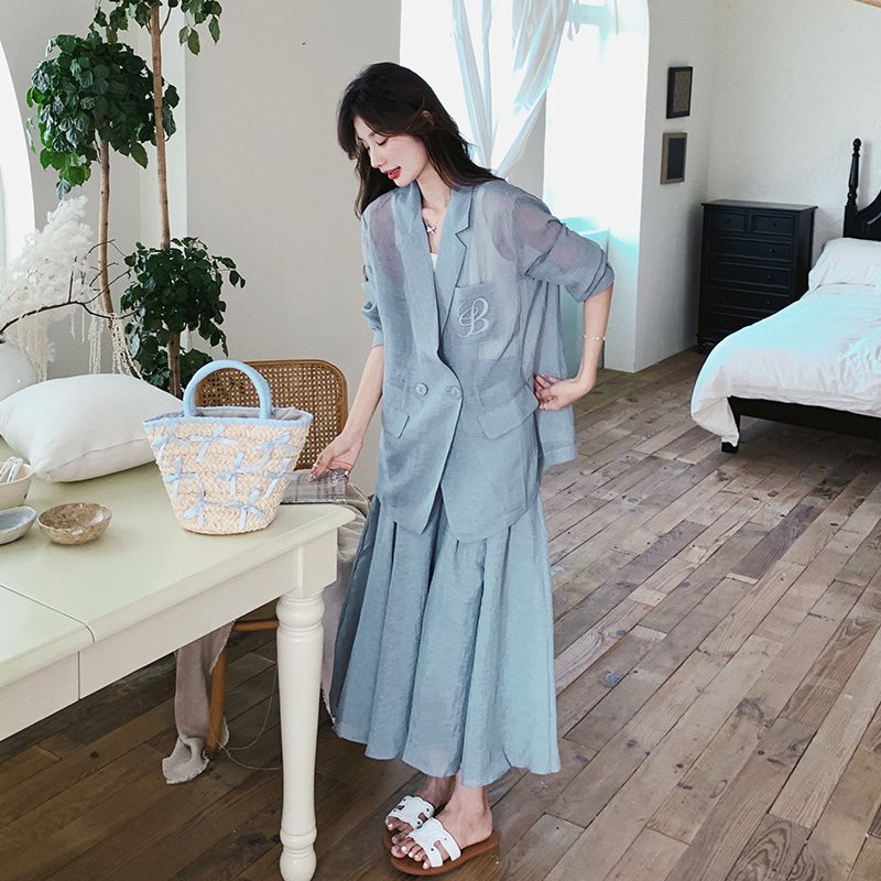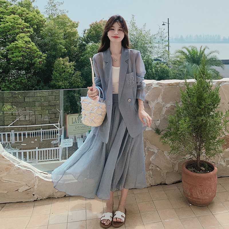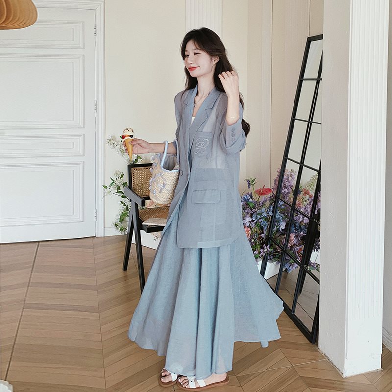 Sunscreen Cotton Linen Suit suit Women’s Thin 2024 Summer New High-end Sense Elegant Loose Skirt Two-piece Set