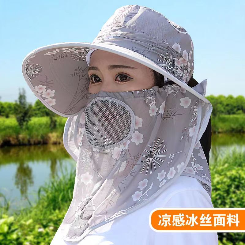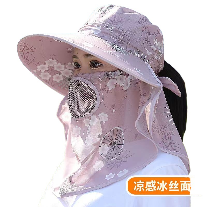 Sunscreen Hat Women's Tea Picking Hat Summer Sun Hat Big Rim Outdoor Sunscreen Face Mask Big Hat Brim Work Sunshade Hat