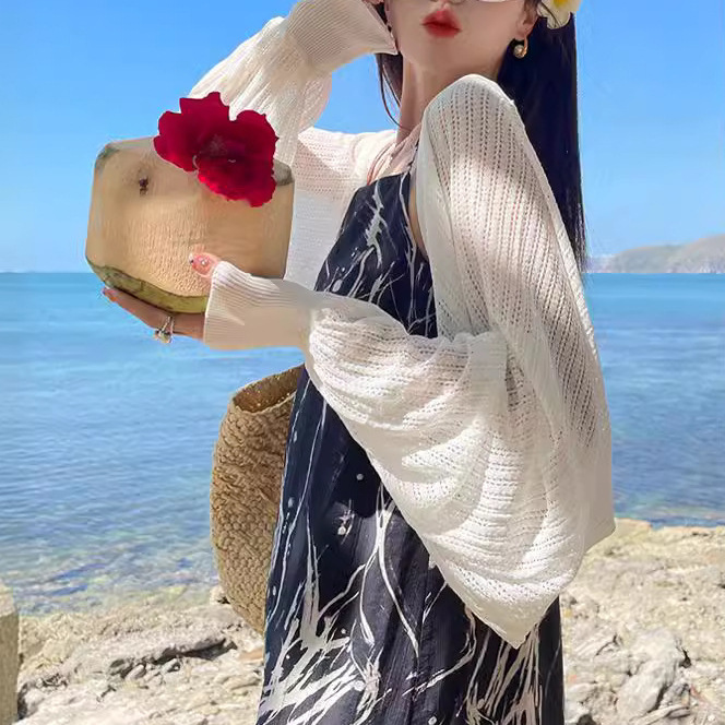 | nameOriginal | Sunscreen Knitted Cardigan Jacket Women's 2024 Summer Thin Slip Skirt Overshirt Ice Silk Short Waistcoat |