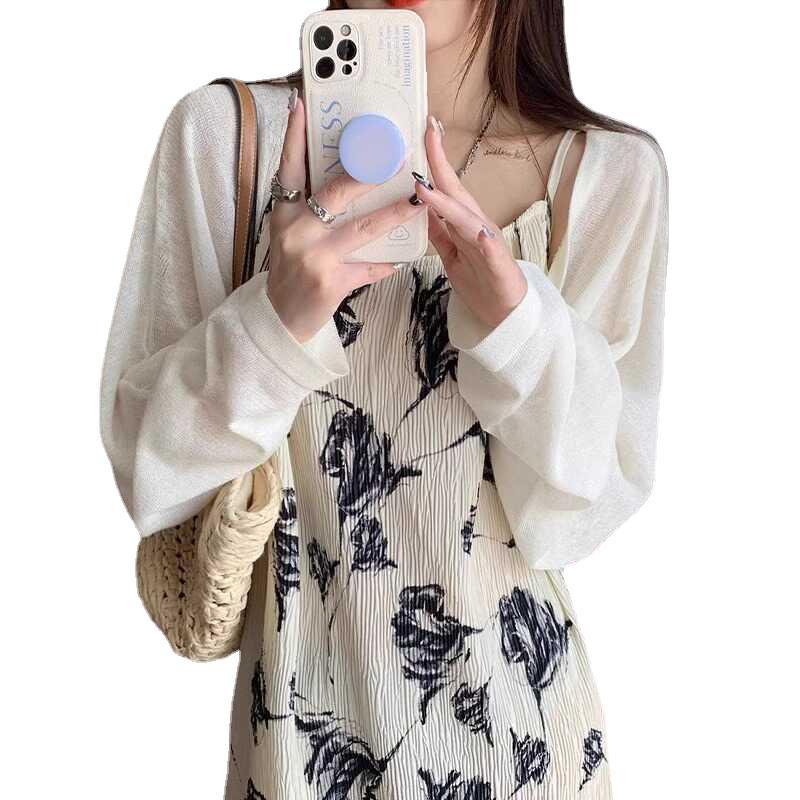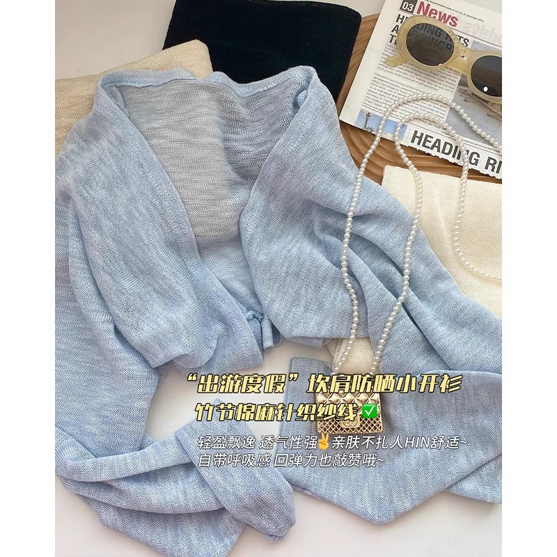 | nameOriginal | Sunscreen Knitted Cardigan Outer Wear Thin Blouse Waistcoat Women's Summer Tulle Cover Arm Top with Sling |