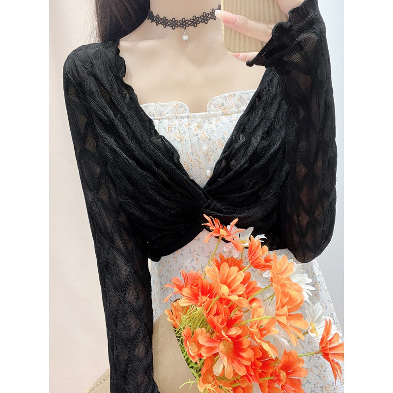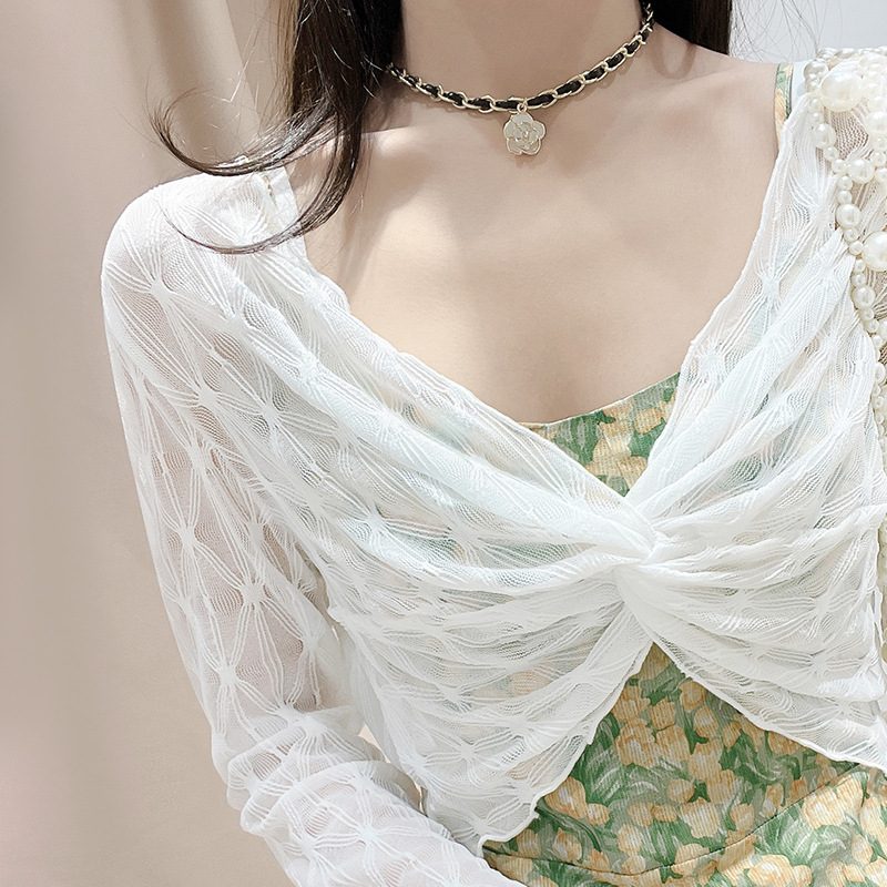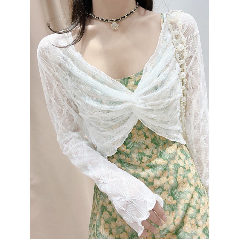 | nameOriginal | Sunscreen Shawl Lace Base Shirt Women's Summer Halter Skirt Outer Blouse Perspective Gauze Short Mesh Top Thin |