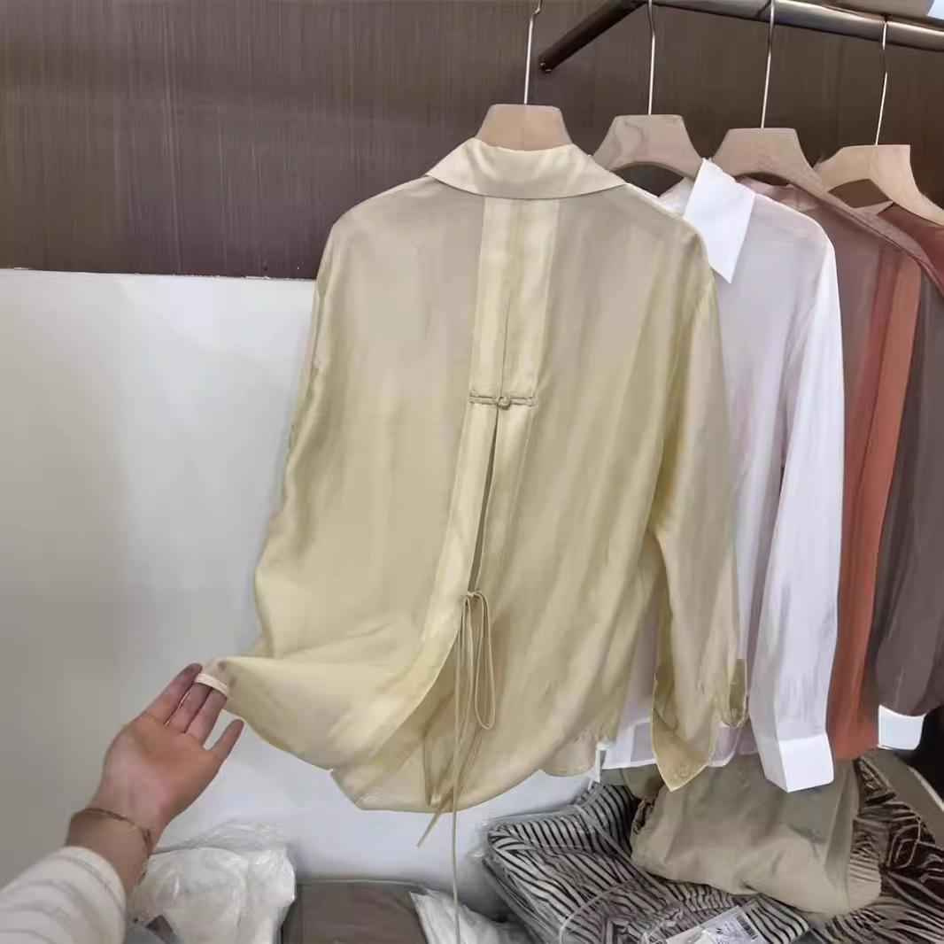 | nameOriginal | Sunscreen Shirt Women's 2024 Summer New Loose Casual Back Design Split Strap Long Sleeve Tencel Shirt |