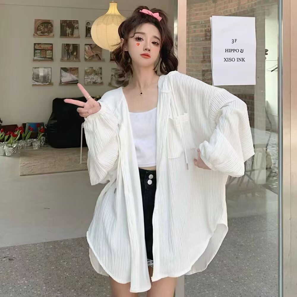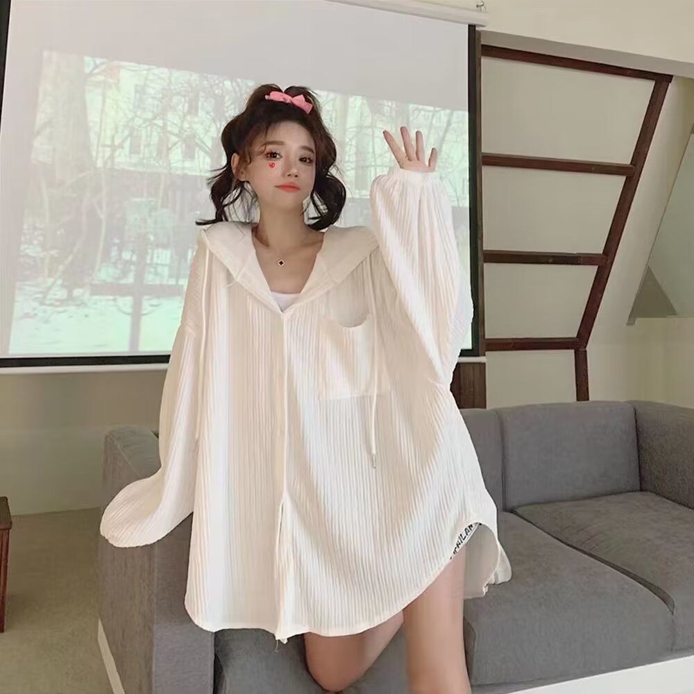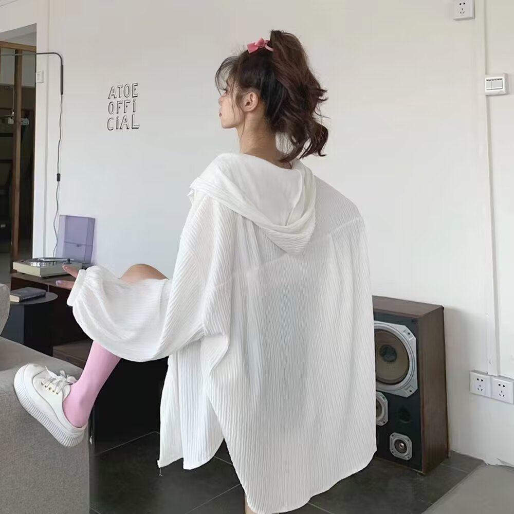 Sunscreen Shirt Women's Long-sleeved 2024 Summer New Loose Outer Wear Sunscreen All-match Hooded Air-conditioning Shirt Jacket