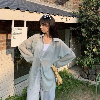 Sunscreen Shirt Women’s Summer 2024 New Style Loose All-match Chiffon Long-sleeved Summer Thin Shirt Jacket