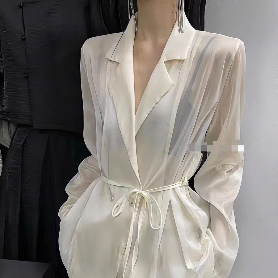 Sunscreen Suit Collar Lace-up Shirt Women's Ultra-thin Breathable Summer 2024 New Loose All-match Elegant High-end Design