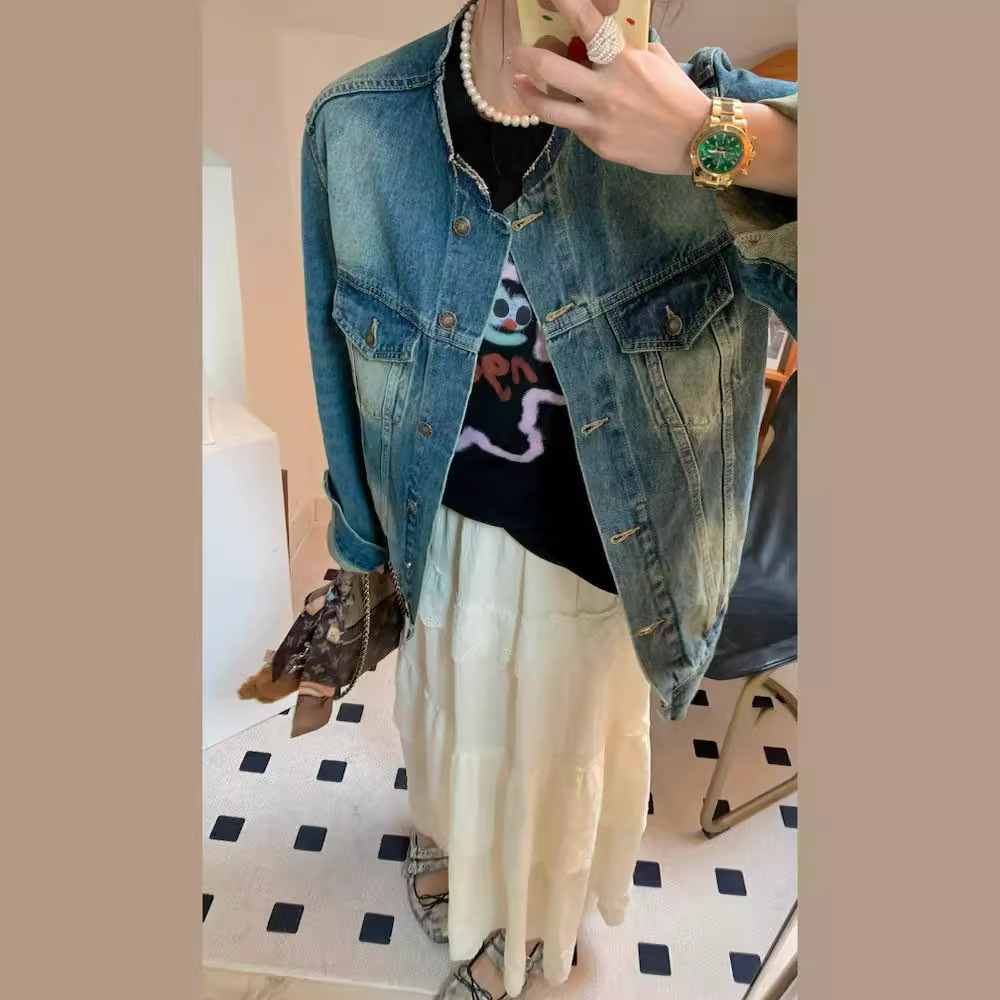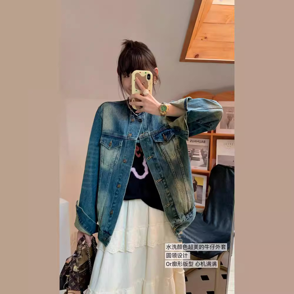 | nameOriginal | Super beautiful washed round neck retro Denim coat for women Spring New loose boyfriend style casual street versatile top |