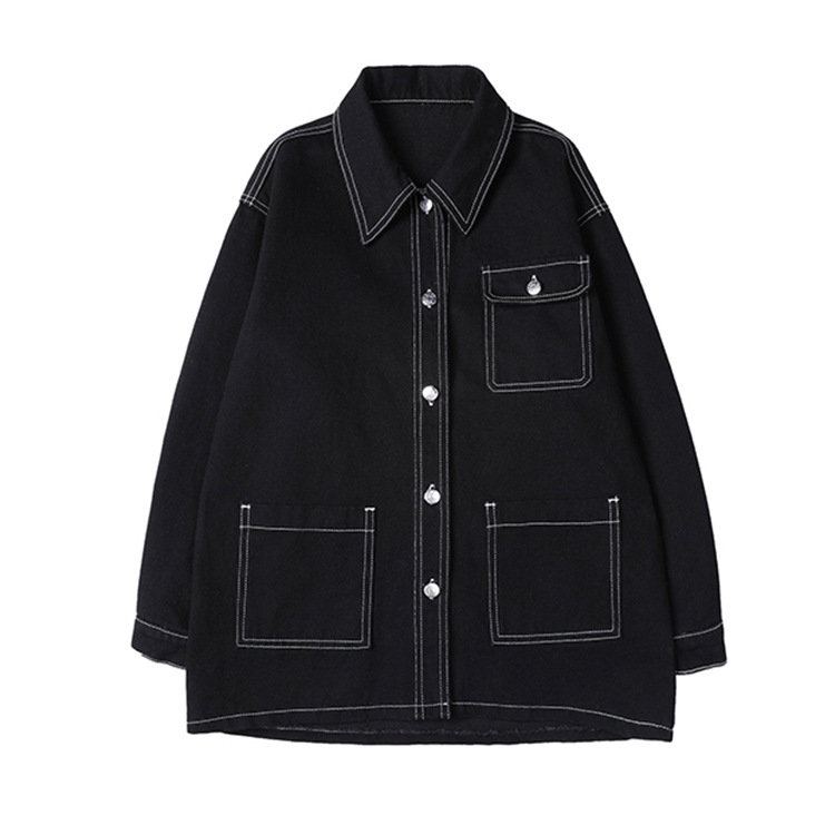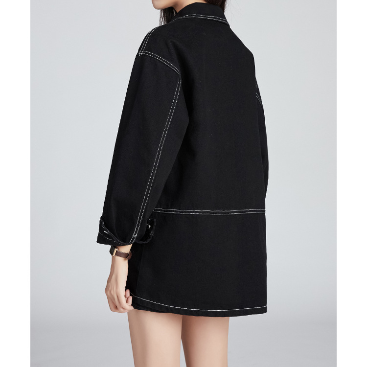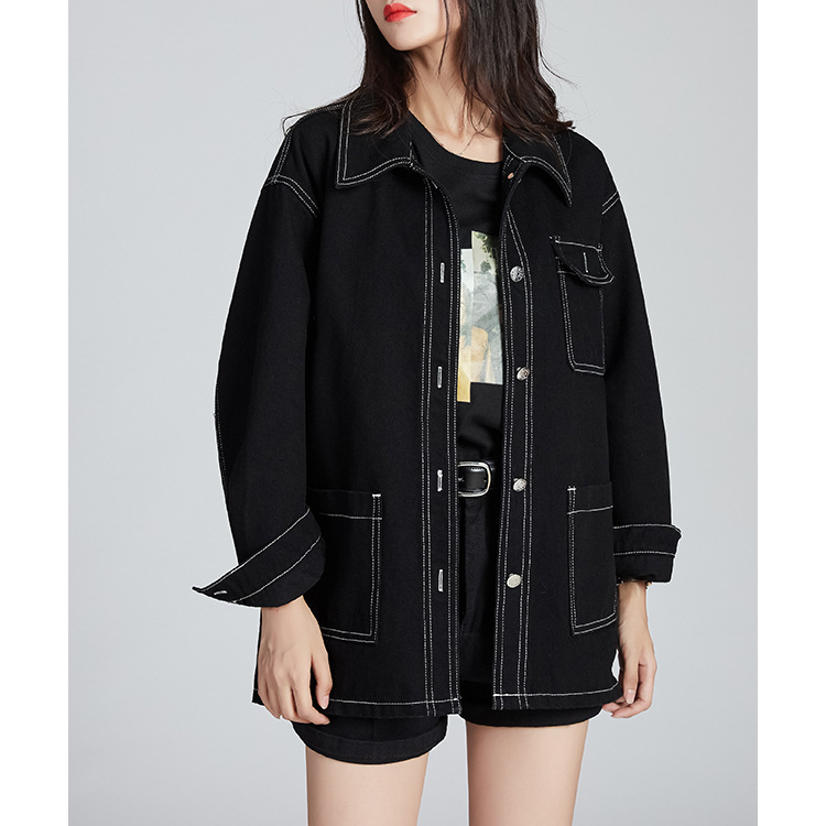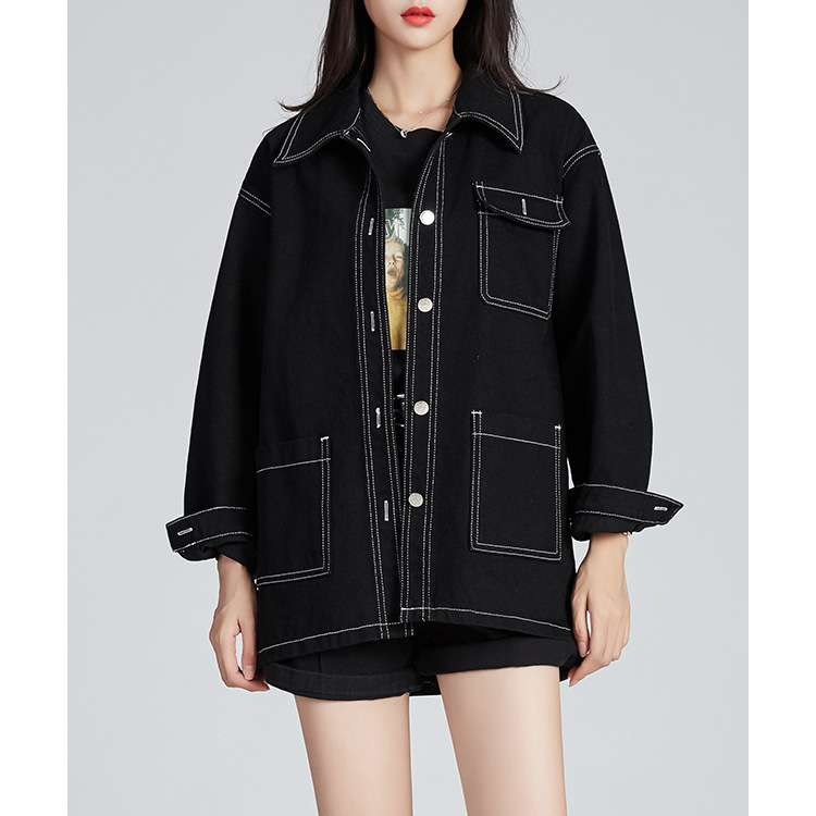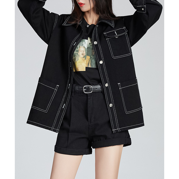 | nameOriginal | Super bright line tannin black denim jacket Women's Spring and Autumn New bf Hong Kong style loose hale and hearty casual denim jacket |