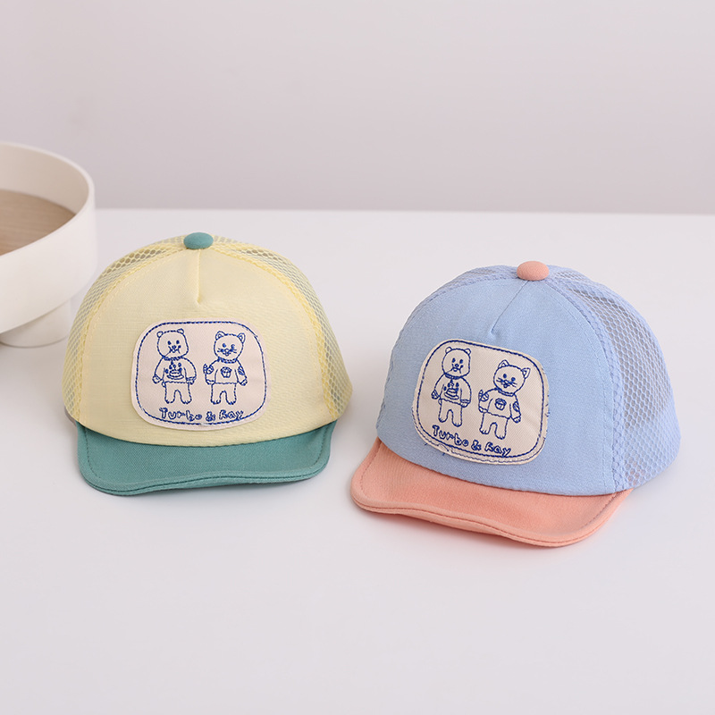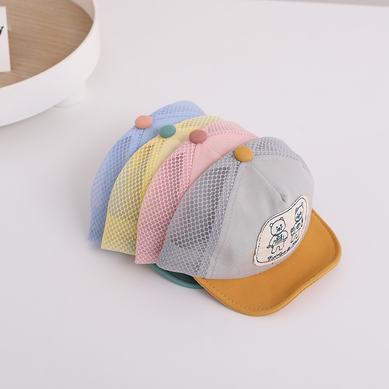 | nameOriginal | Super cute baby hat summer shade net hat baseball cap 0-3 years old soft edge cap cartoon patch sun hat |