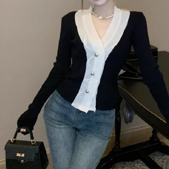 Super fairy elegant socialite V-neck lace long-sleeved sweater women's French Chanel style pure tea art Top Autumn
