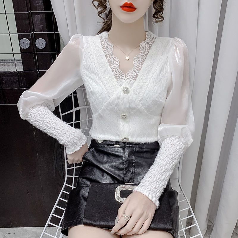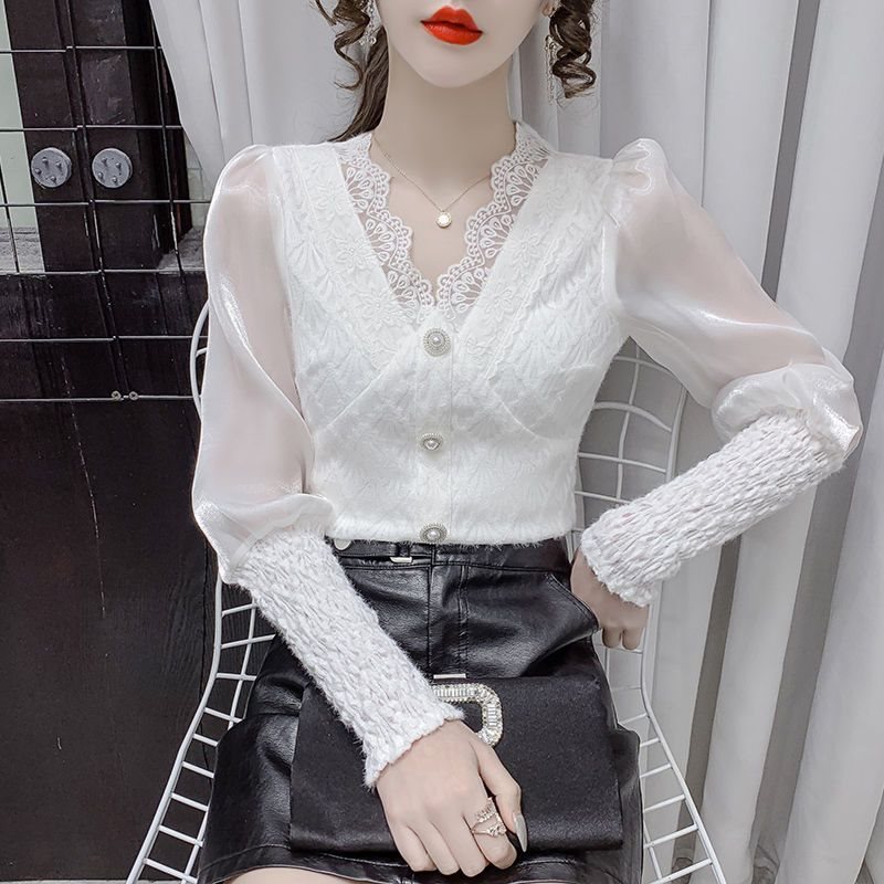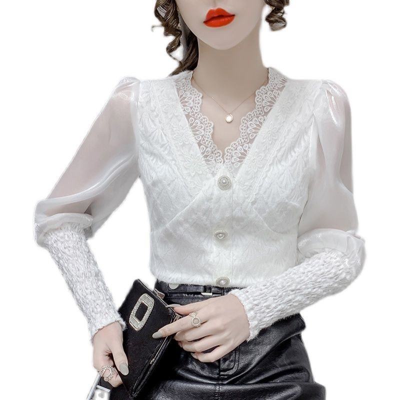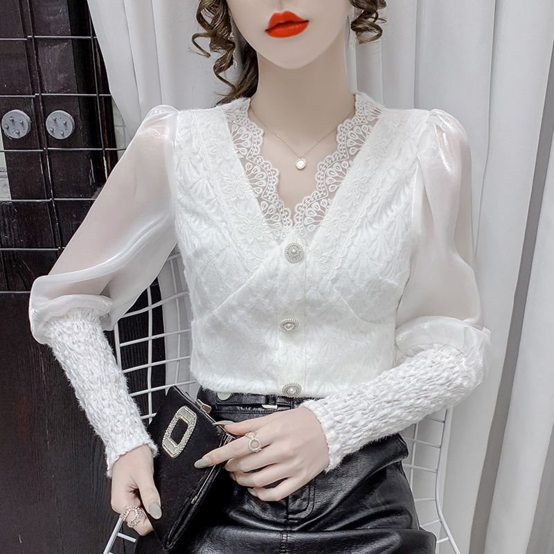 | nameOriginal | Super Fairy Lace Shirt Women's Autumn 2021 New Fairy Long-sleeved Design Sense Niche High-end V-neck Top for Women |