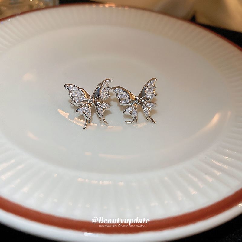 Super fairy zircon butterfly ins ear clip light luxury high-grade earless ear bone clip simple cold style fashion earrings