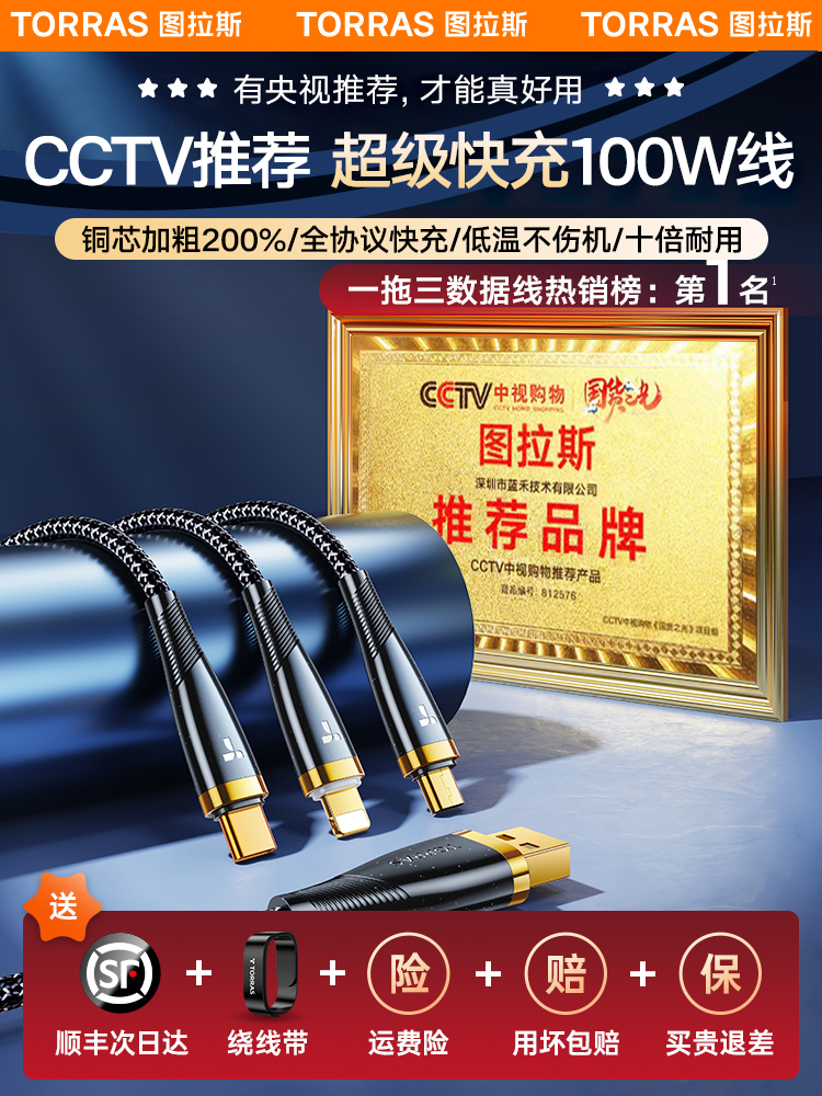 | nameOriginal | [Super Fast Charging] Data Cable Three-in-One Charging Cable Bao One to Three Tpyec Car Mount 6a Suitable for Apple PD Huawei Vivo Samsung Oppo Android Mobile Phone 66W Multifunctional TC Three Heads |