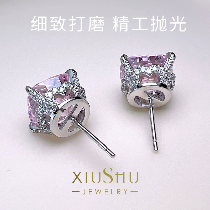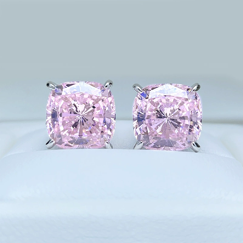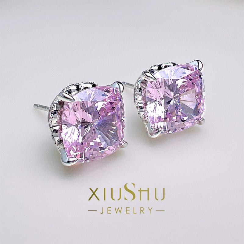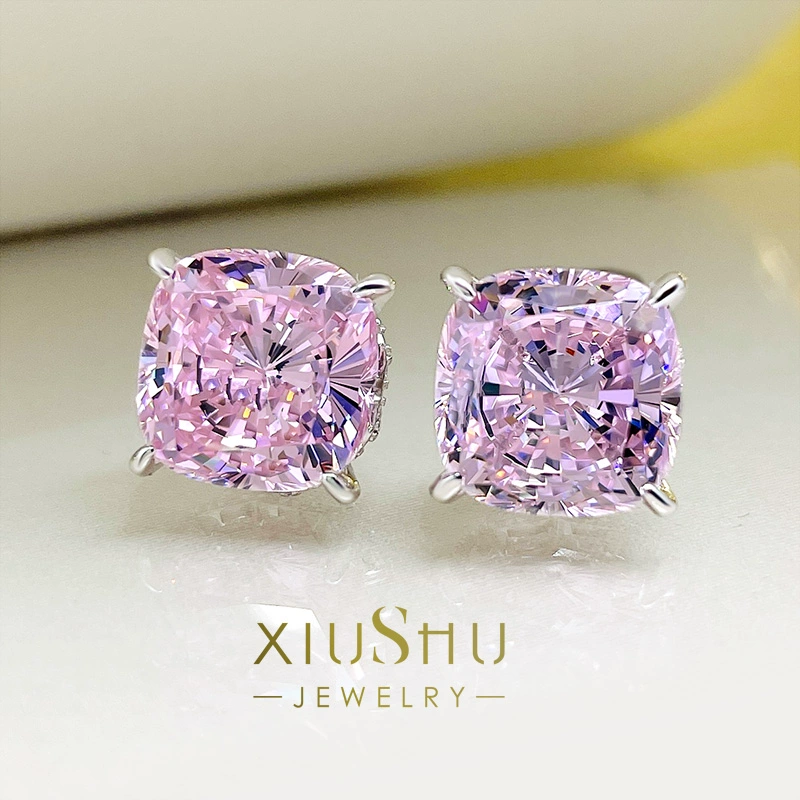 | nameOriginal | Super flash 5 carat cherry blossom pink diamond earrings, imported high carbon diamond fat square big face earrings for women, slimming and simple |