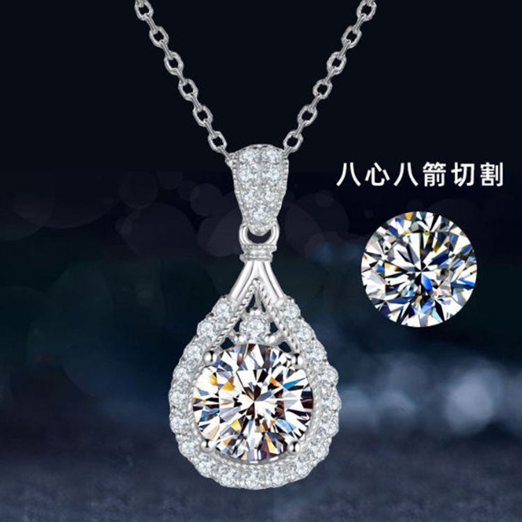 Super Flash Water Drop Pear-shaped D-grade Moissanite High Carbon Diamond Pendant Plated pt950 Platinum Micro-inlaid Eight Heart and Eight Arrows Necklace