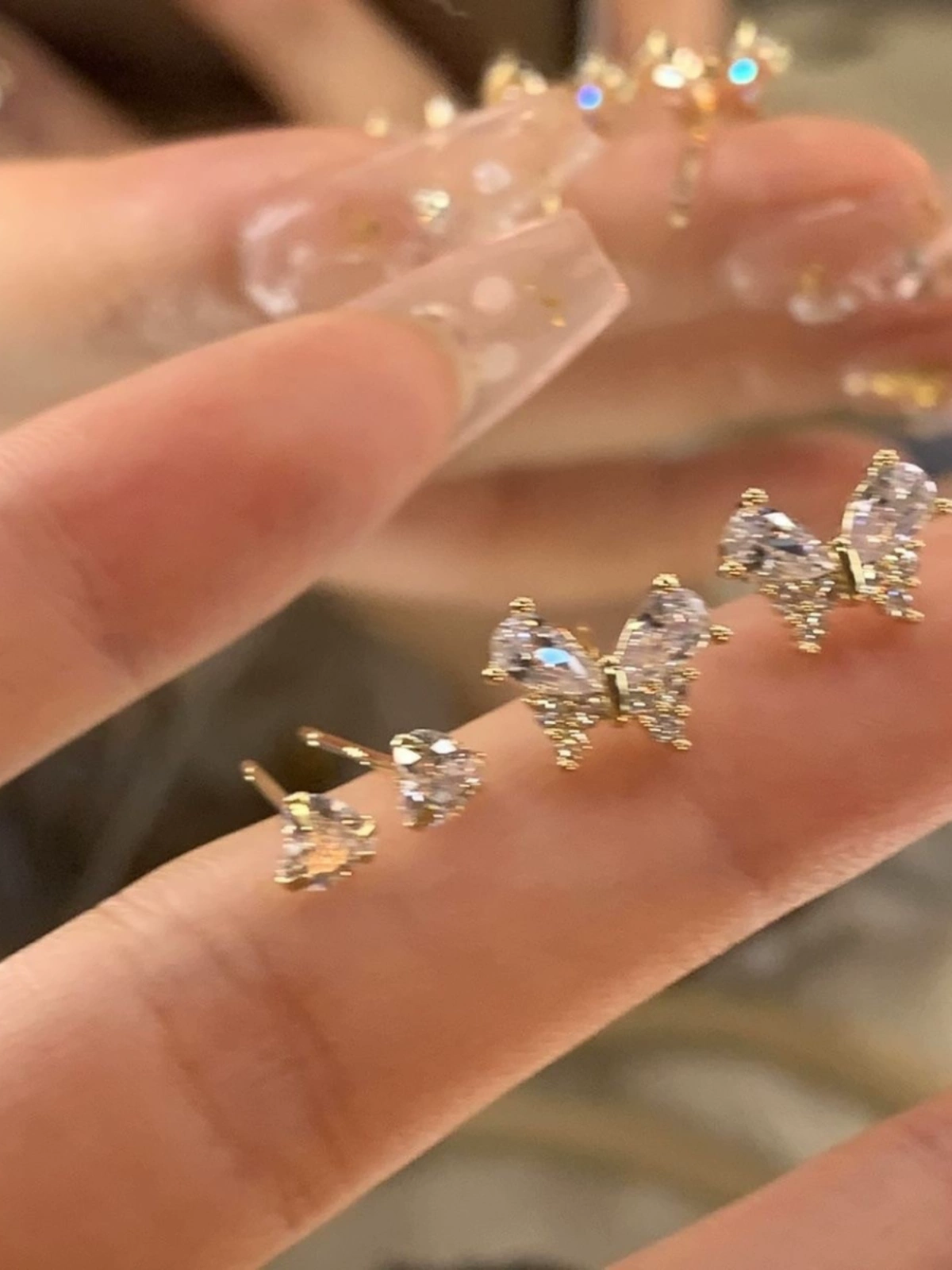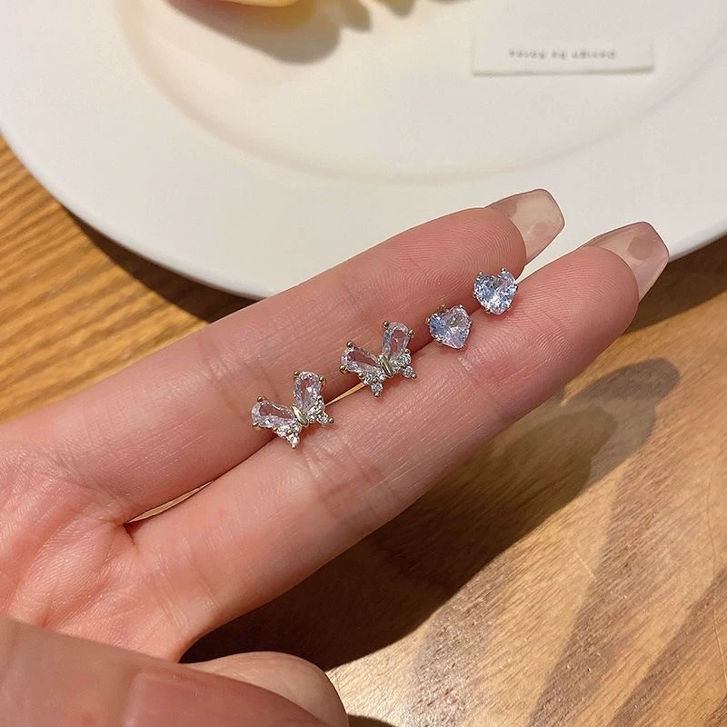 | nameOriginal | Super flash zircon butterfly earrings four-piece set for women, high-end design set, 925 silver needle earrings, hot style earrings |