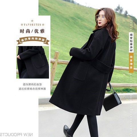 Super Hot Ins Woolen Coat Women’s Trendy Autumn and Winter New Long Korean Style Loose Slimming Black Woolen Coat for Mother